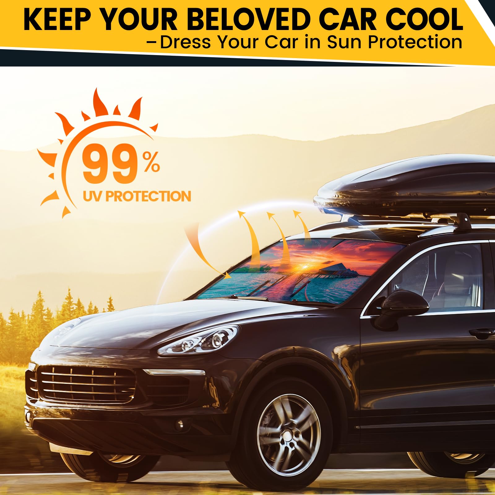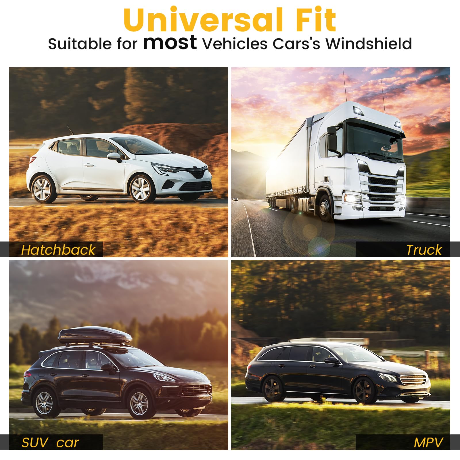 Perfect Fit - Universal Size: 55.2"L x 31.5"W, ideal for most standard cars, Sedans, Mid-Size SUVs and Trucks with regular-sized windshields. We recommend you to measure first before purchasing