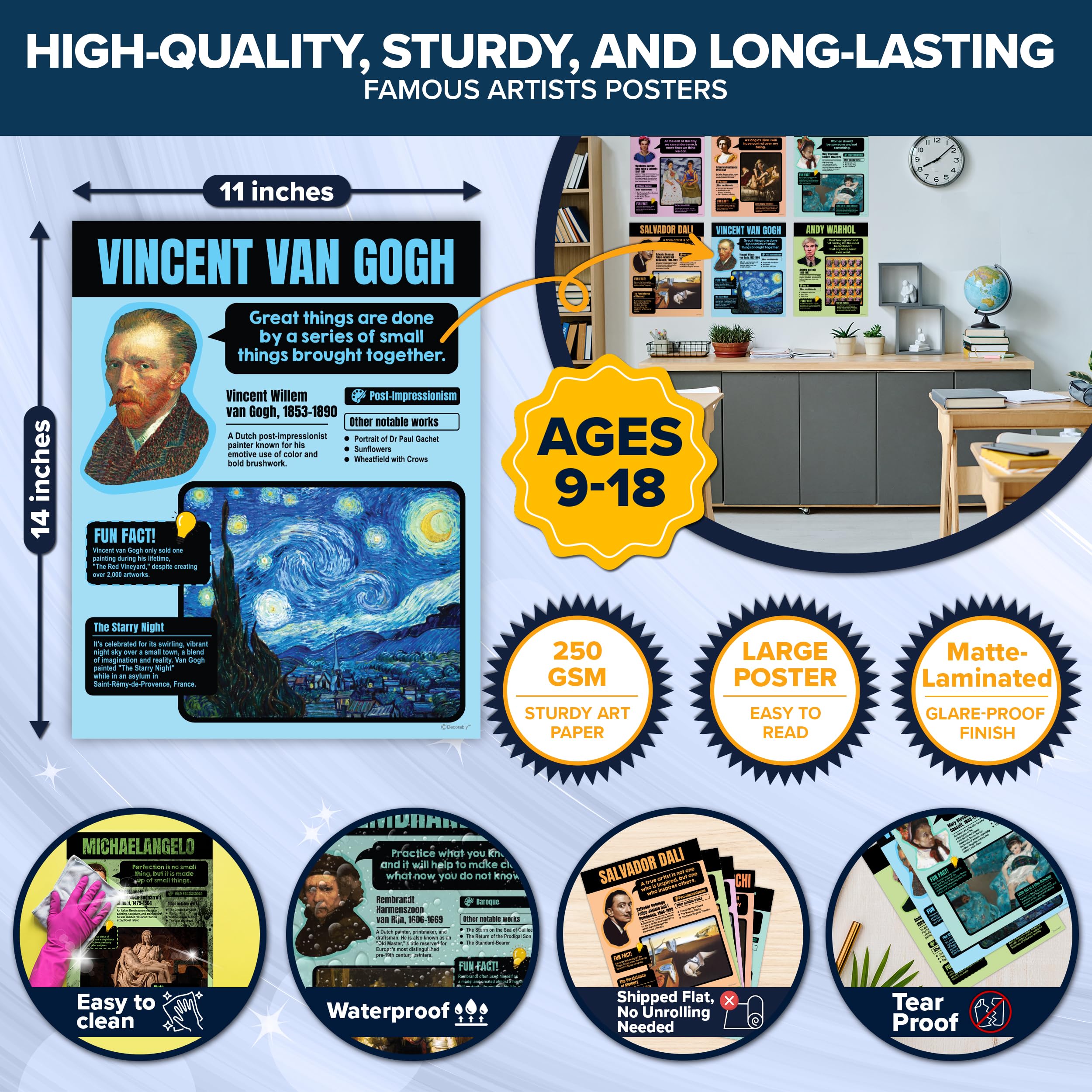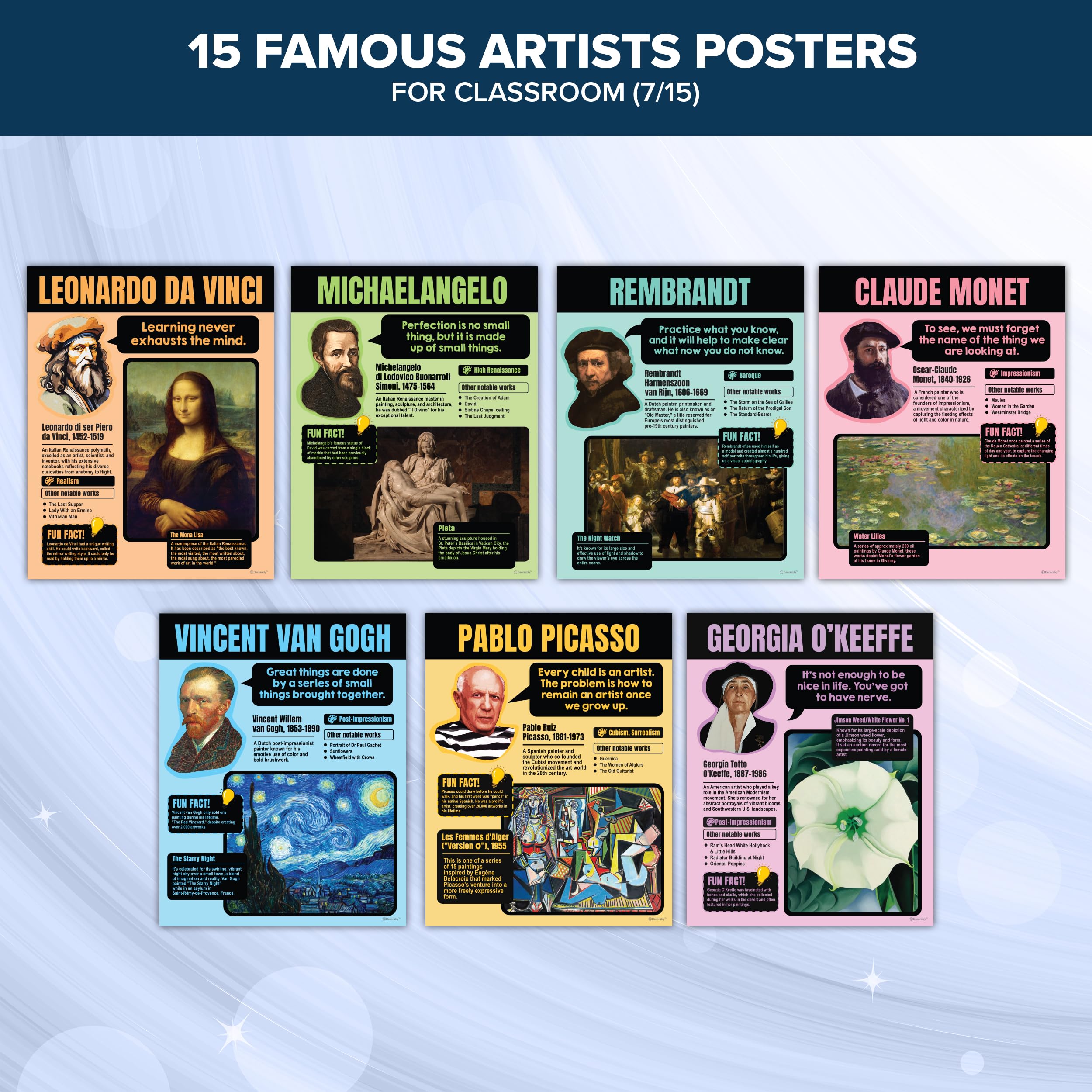 ENGAGING CLASSROOM DECOR - These art posters for classroom famous artists, create an inspiring learning environment. With informative and visually appealing designs, these artist posters provide constant creativity and motivation for students.