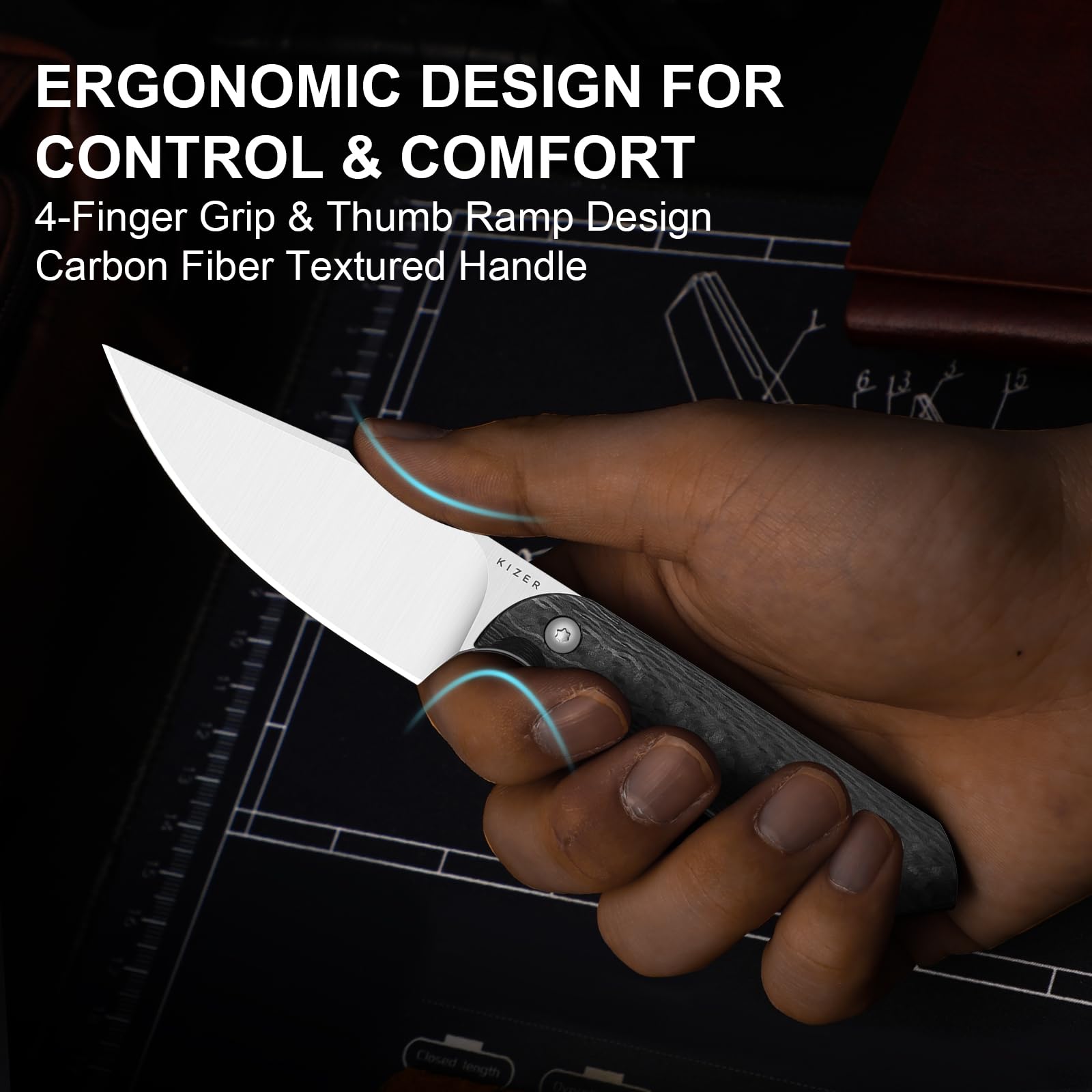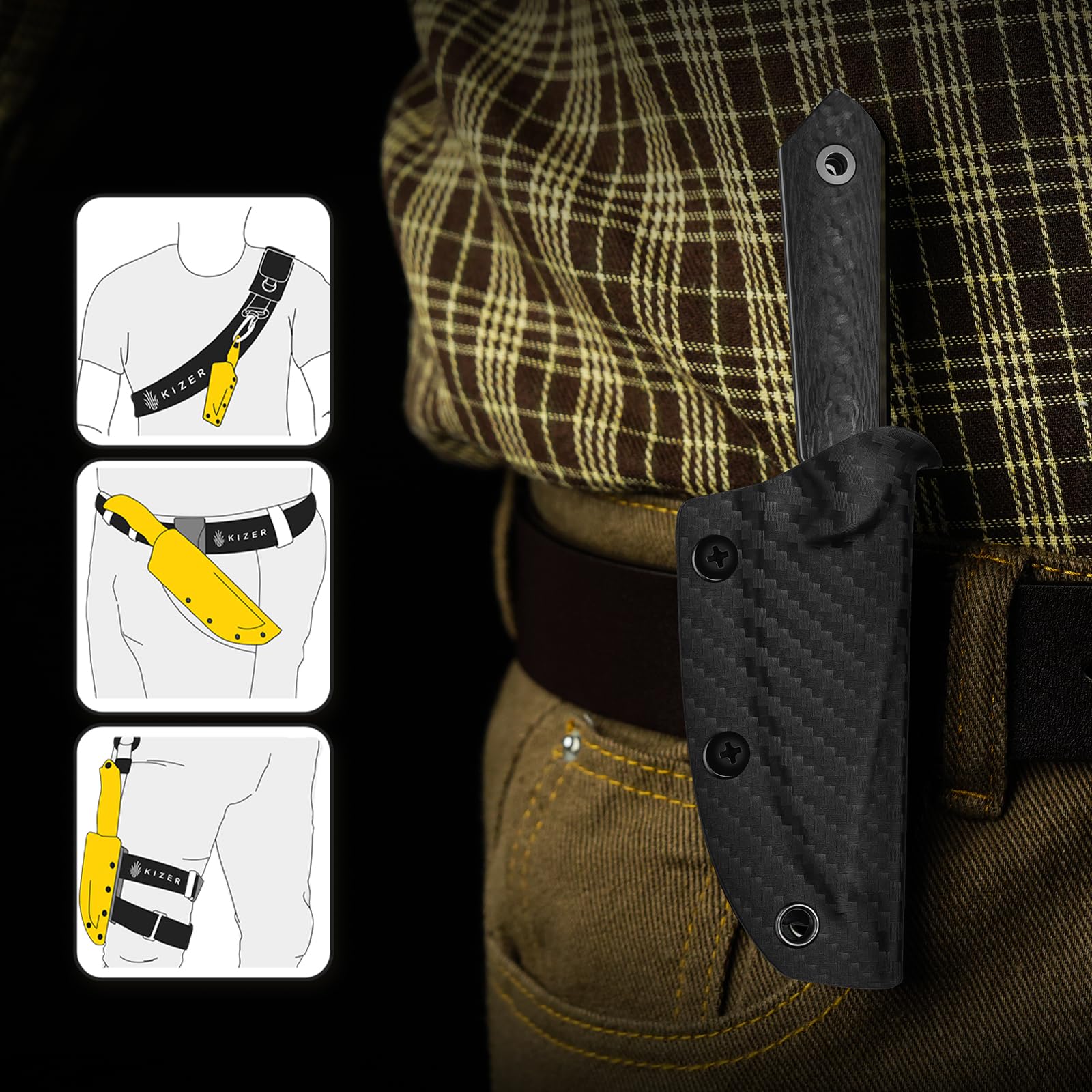 Ultra-portable EDC Essential: Weighing only around 2.37 oz with a 3-inch blade, Kizer Mini Harpoon fixed blade knife slips seamlessly into daily carry. Mini Harpoon edc knife’s slim profile fits discreetly in pockets or bags, ready for any adventure.