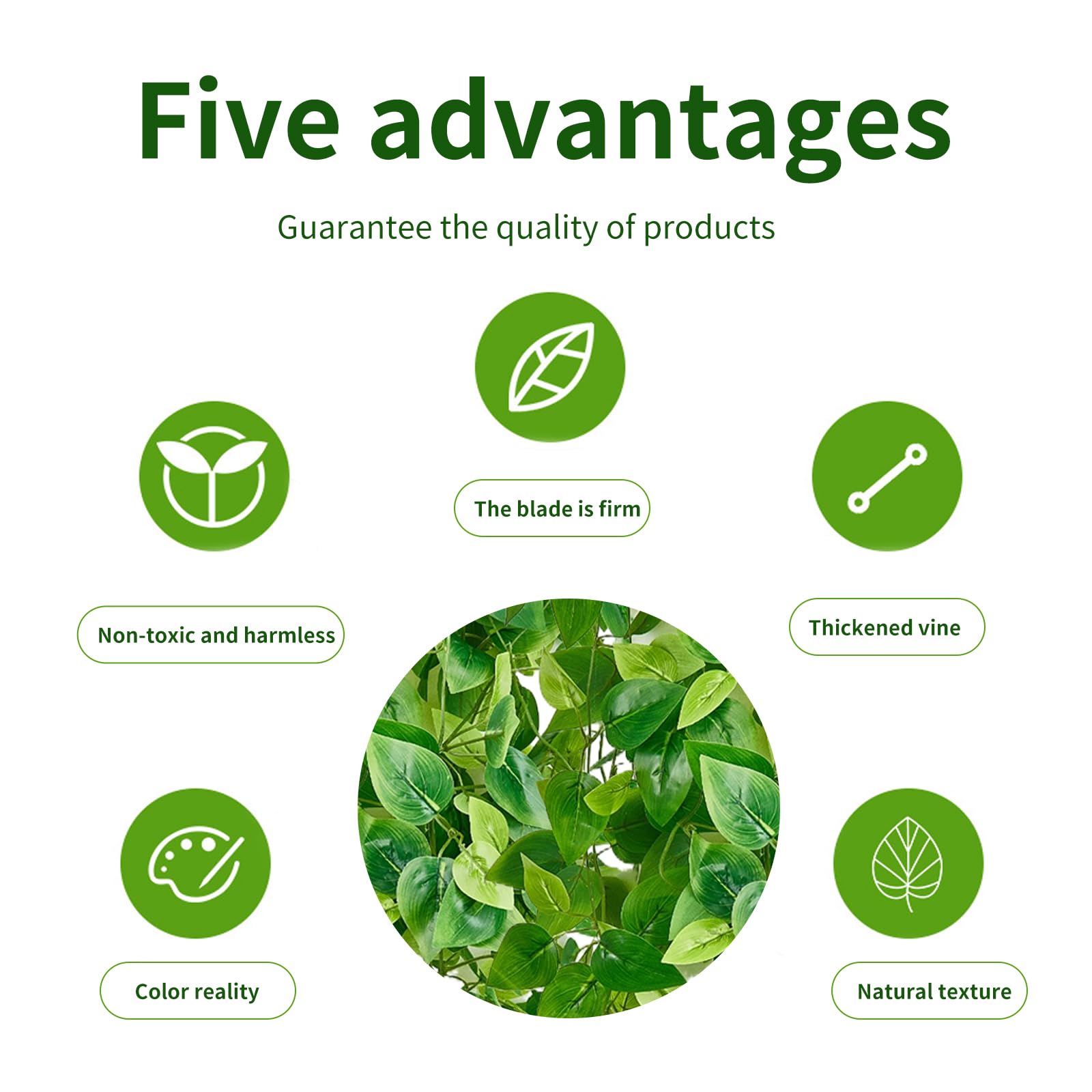 【Easy To Maintain】:Fake hanging vine leaves look like real preserved plants, but won't wilt, fade or be easily damaged. This artificial plant stays fresh year after year, the fake ivy plant has no water and requires no maintenance, it is shiny and beautiful all year round.