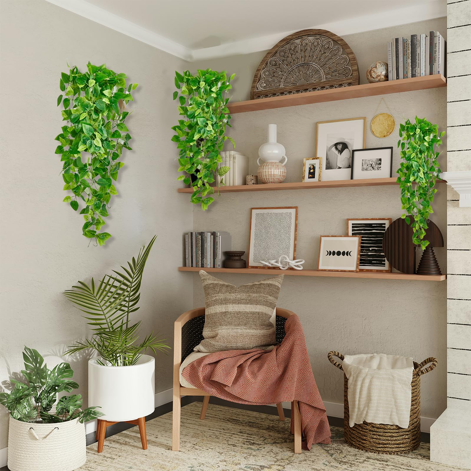 【Quality Assurance】:The leaves of the fake hanging plants are made of high quality fabric with a glue-filtered surface. More vivid than the silk leaves of other brands. The lifelike appearance is more realistic and natural.