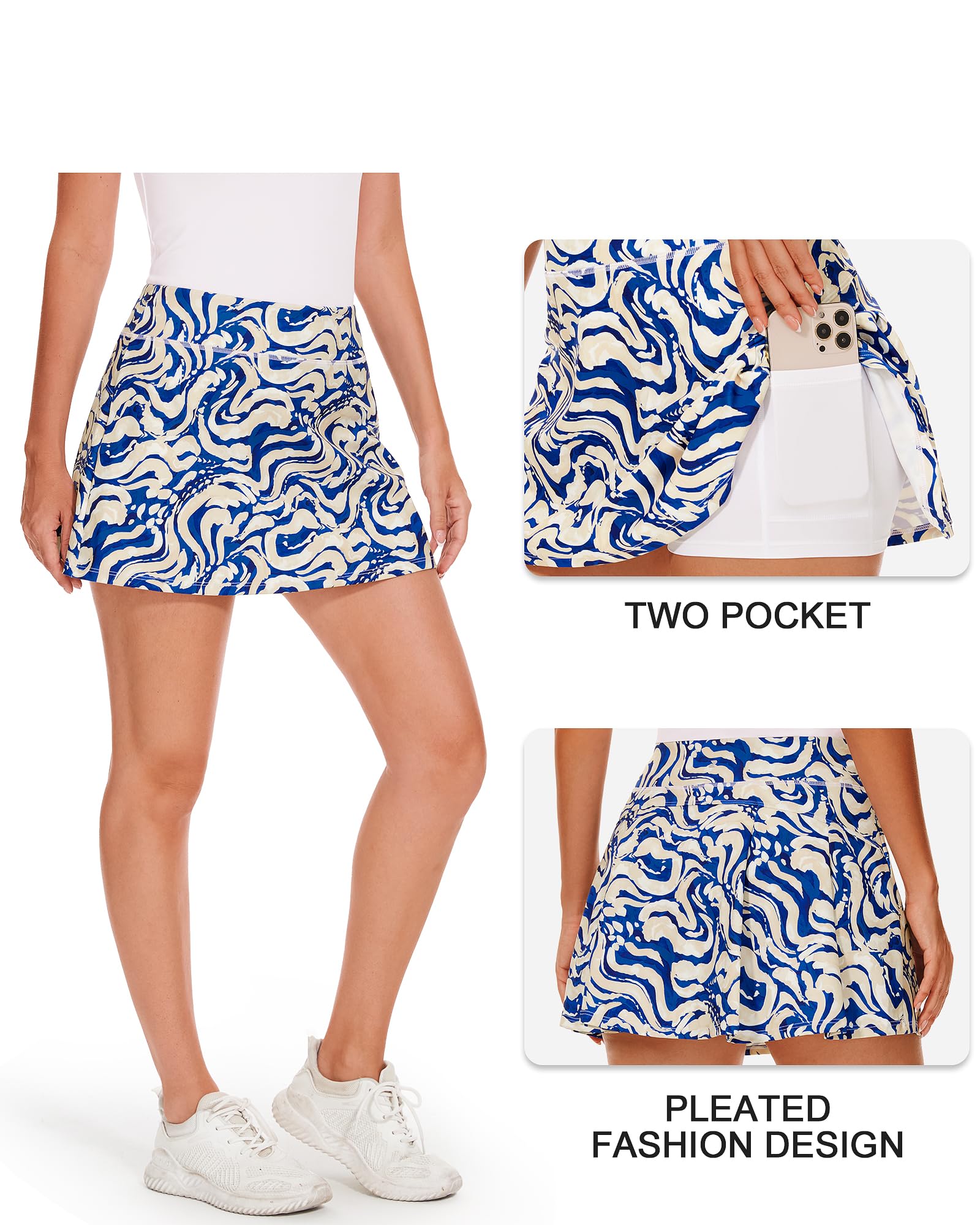 Game-Friendly Pockets: Don’t let a bag slow you down. Our stretchy tennis skirts for women have two deep pockets for all your essentials—whether that’s a phone and keys or an extra tennis ball!