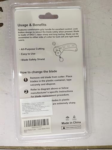 What You Get: You can get 1pcs 45mm Rotary Cutter + 1pcs rotary blade, 5pcs extra replacement rotary cutter blades stored in a case, with these blades you can use for a long time.It's easy to use and replace blades.