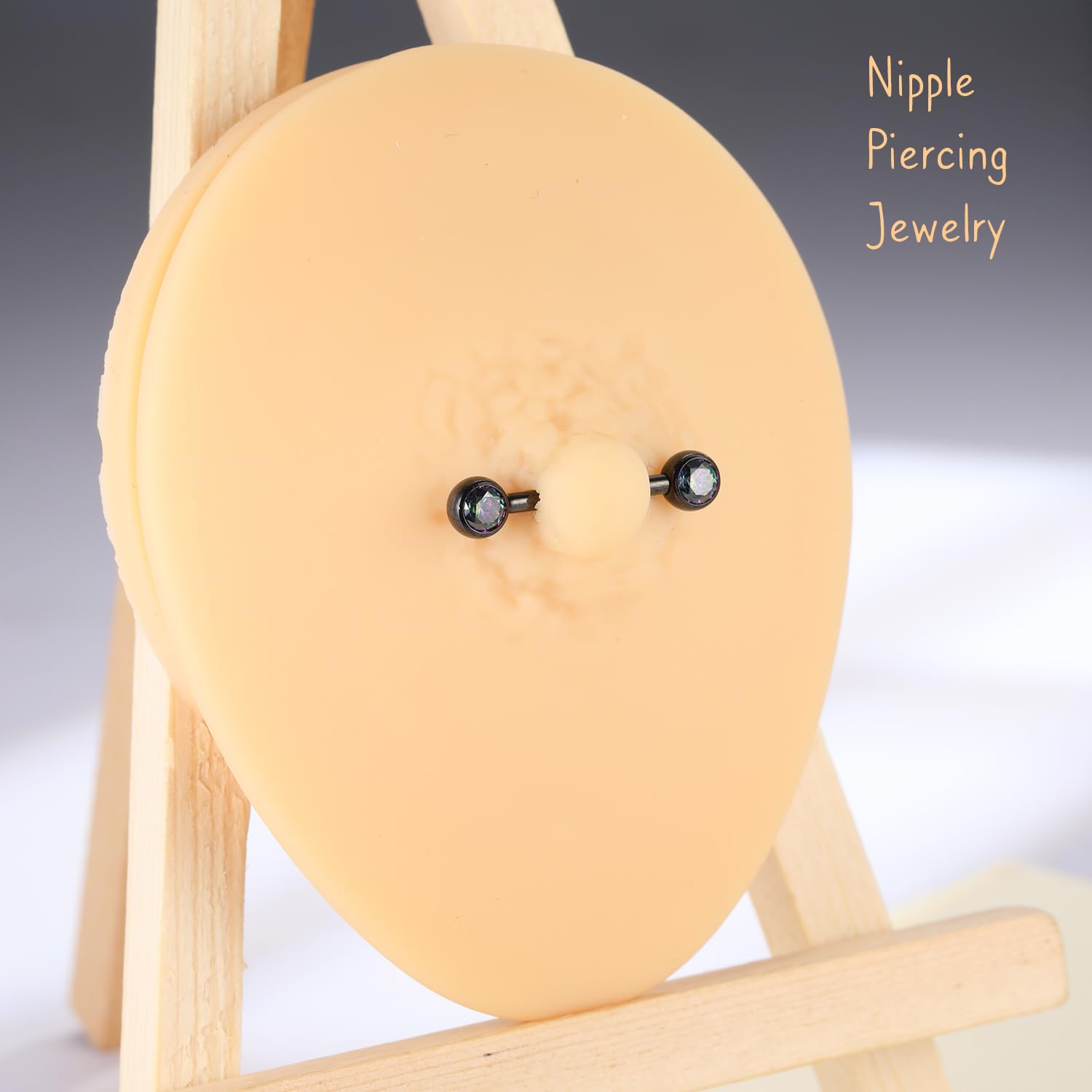 Unique Design: The nipple piercing jewelry with shiny cubic zirconia on both side, to make your nipple piercing more charming