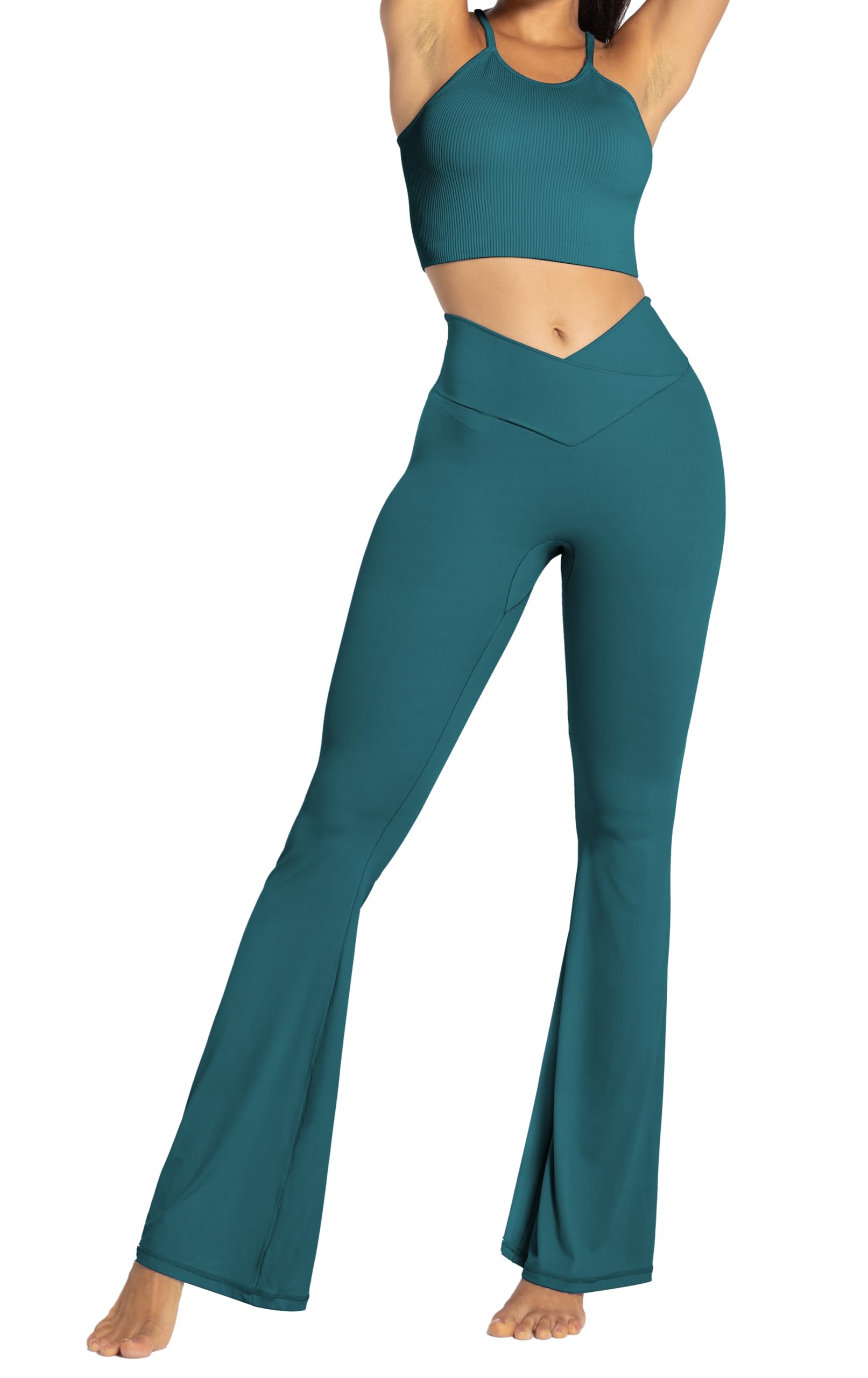 [Crossover Waistband] The flare legging is designed with crossover waistband and V seam that gives you a flattering fit.