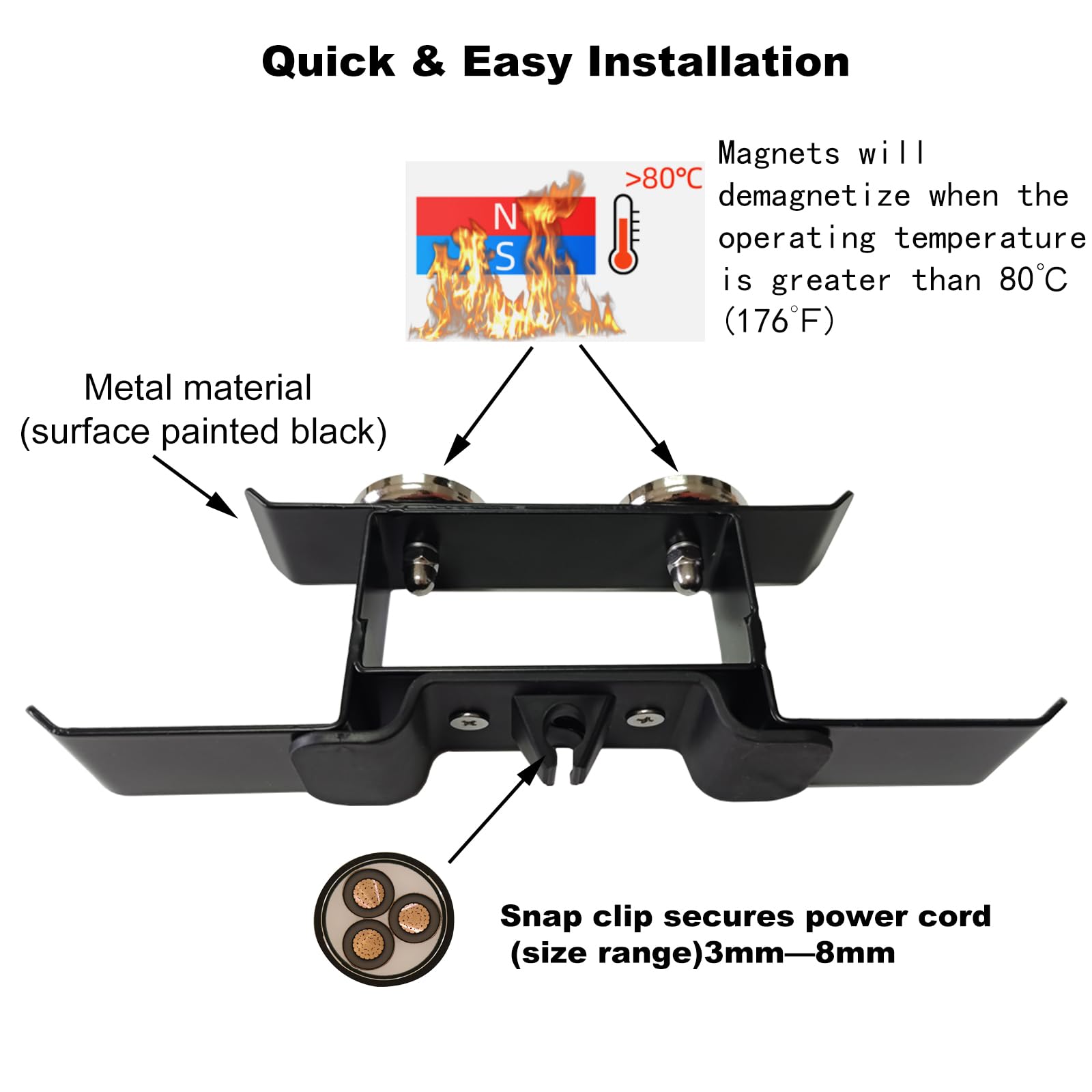2.Quick and Easy Installation: Traeger grill accessories, the strong magnetic base ensures secure attachment to metal surfaces, such as the side of your Traeger or Pit Boss Pellet Grill, keeping cords neatly organized and out of the way while you focus on grilling up a storm