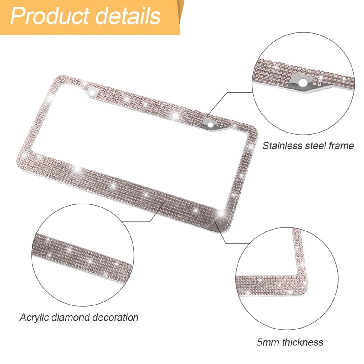 Other Advantage: Shiny and dazzling design sparkles outer appearance, which is a super stylish, cute and exquisite decoration for your car. Also a protection for your license plate, an excellent gift choice for him or her on Christmas, Birthday, Anniversary, New Year, etc.