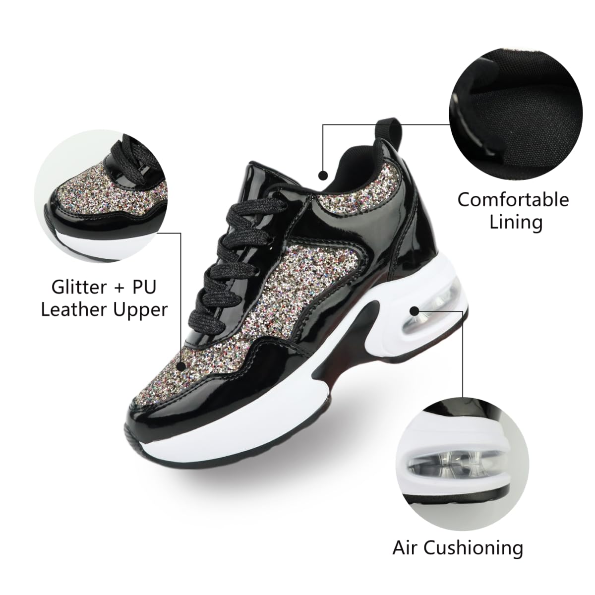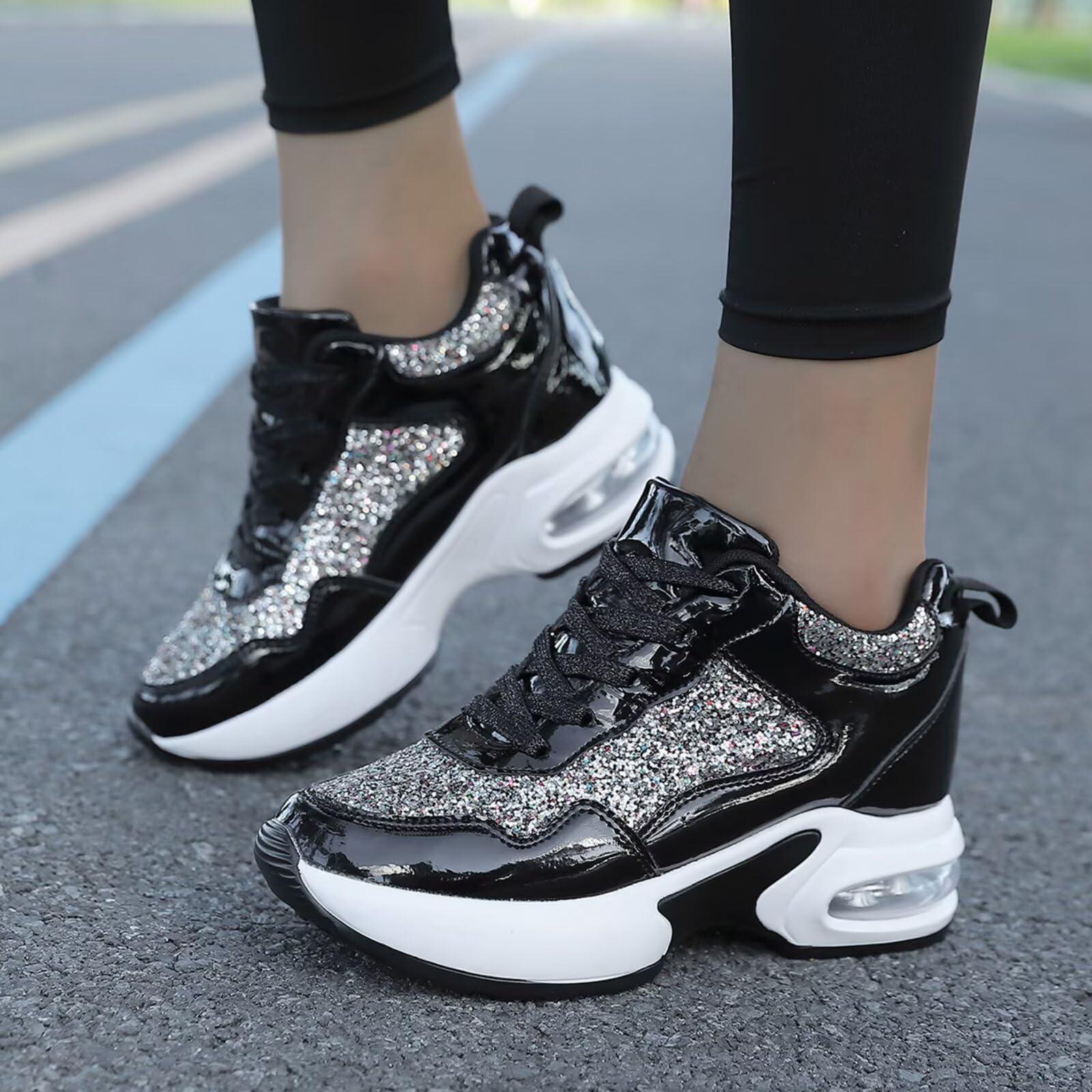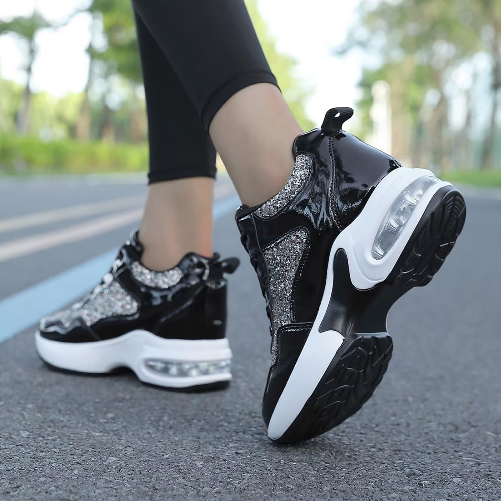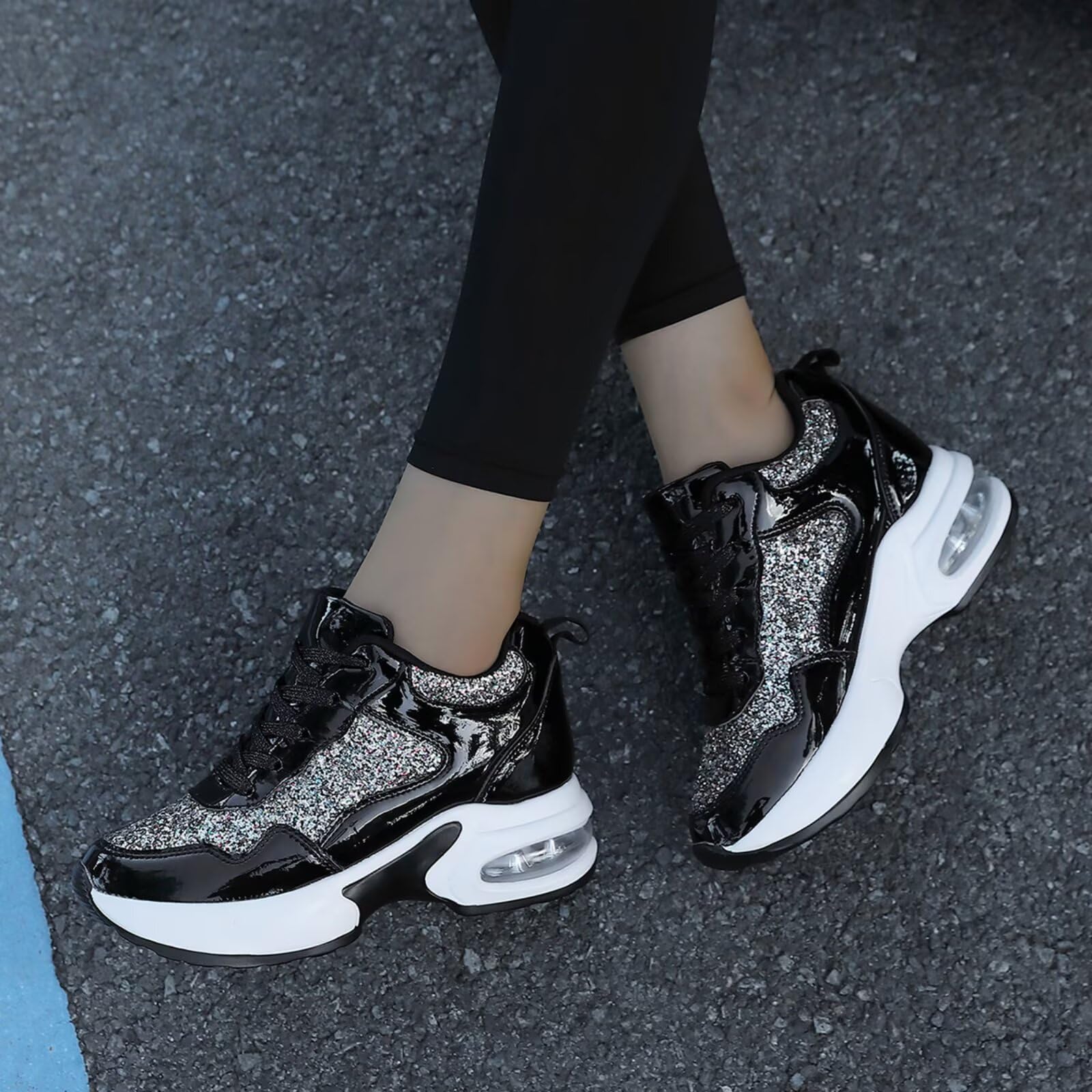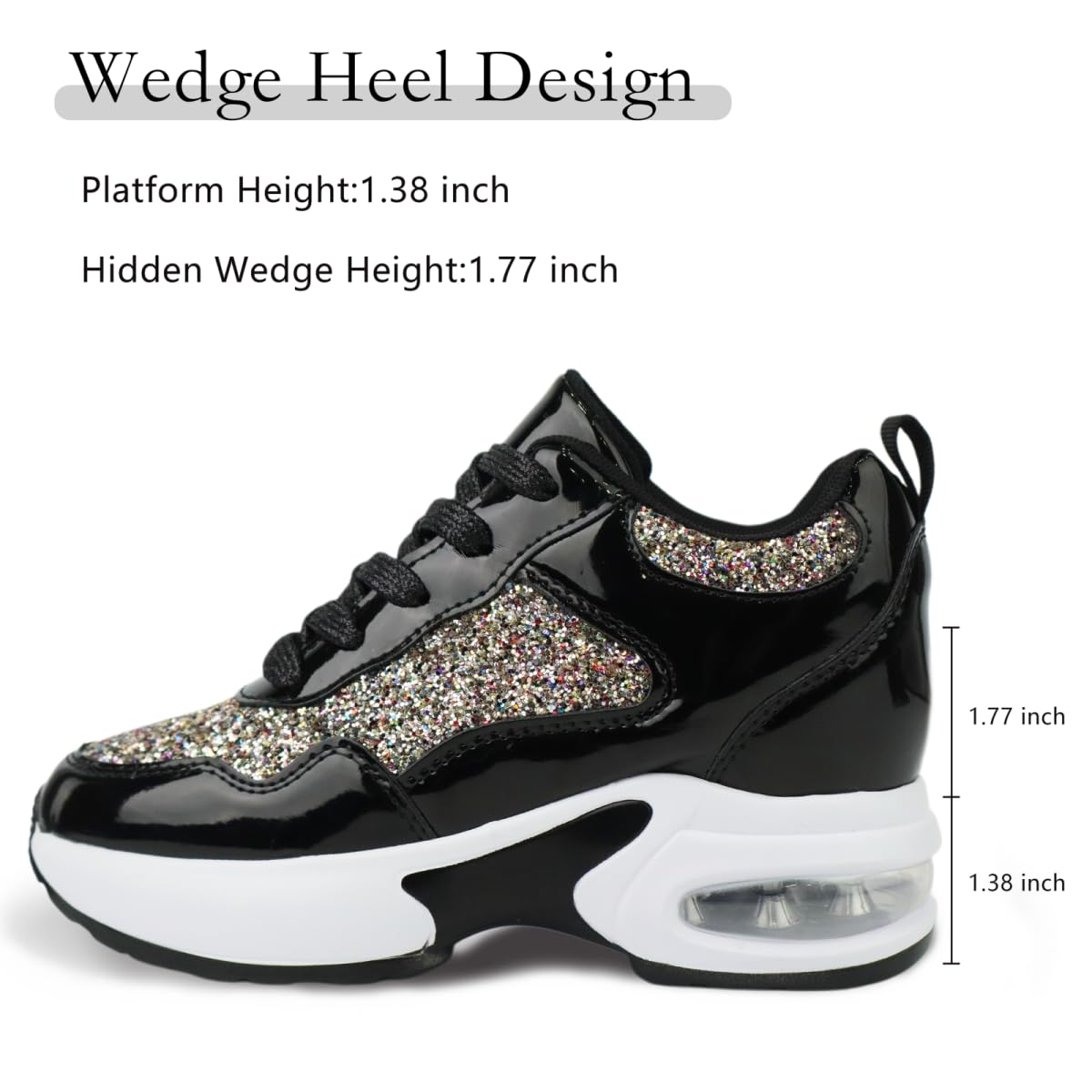 【Stylish Upper】The upper of this wedge sneaker features shiny popular elements and is embellished with shiny fabrics, full of texture, adding brilliance to the entire pair of women's shoes and attracting everyone's attention.