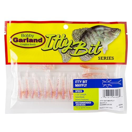 Bobby Garland’s highly popular Itty Bit Series brings an extra measure of finesse for fussy crappie and for matching small forage. The new Itty Bit Mayfly, like the Itty Bit Slab Hunt’R, Itty Bit Swim’R and Itty Bit Slab Slay’R, delivers a proven Bobby Garland shape in “Itty Bit” proportions. The 1.25-inch Itty Bit Mayfly has a natural insect profile with realistic features, including a forked-tail, ribbed abdomen, wings and legs. The Itty Bit Mayfly was designed to pair perfectly with Bobby Garland’s Itty Bits jigheads as well as a wide-range of jigheads that utilize a size 6 hook or smaller.