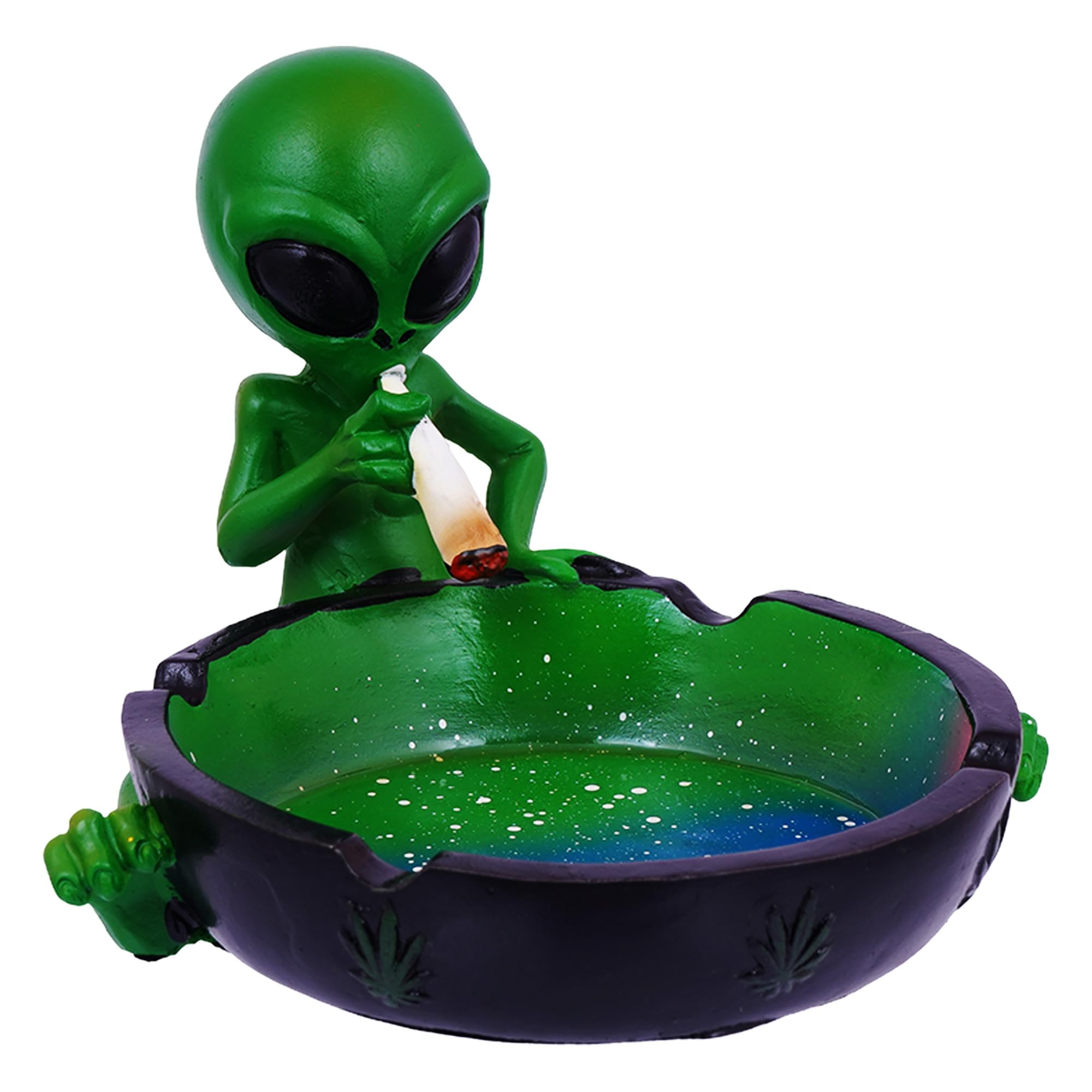 Resin ashtray features "The Toker" figure taking a hit off a blunt, with pot-leaf décor inside and out