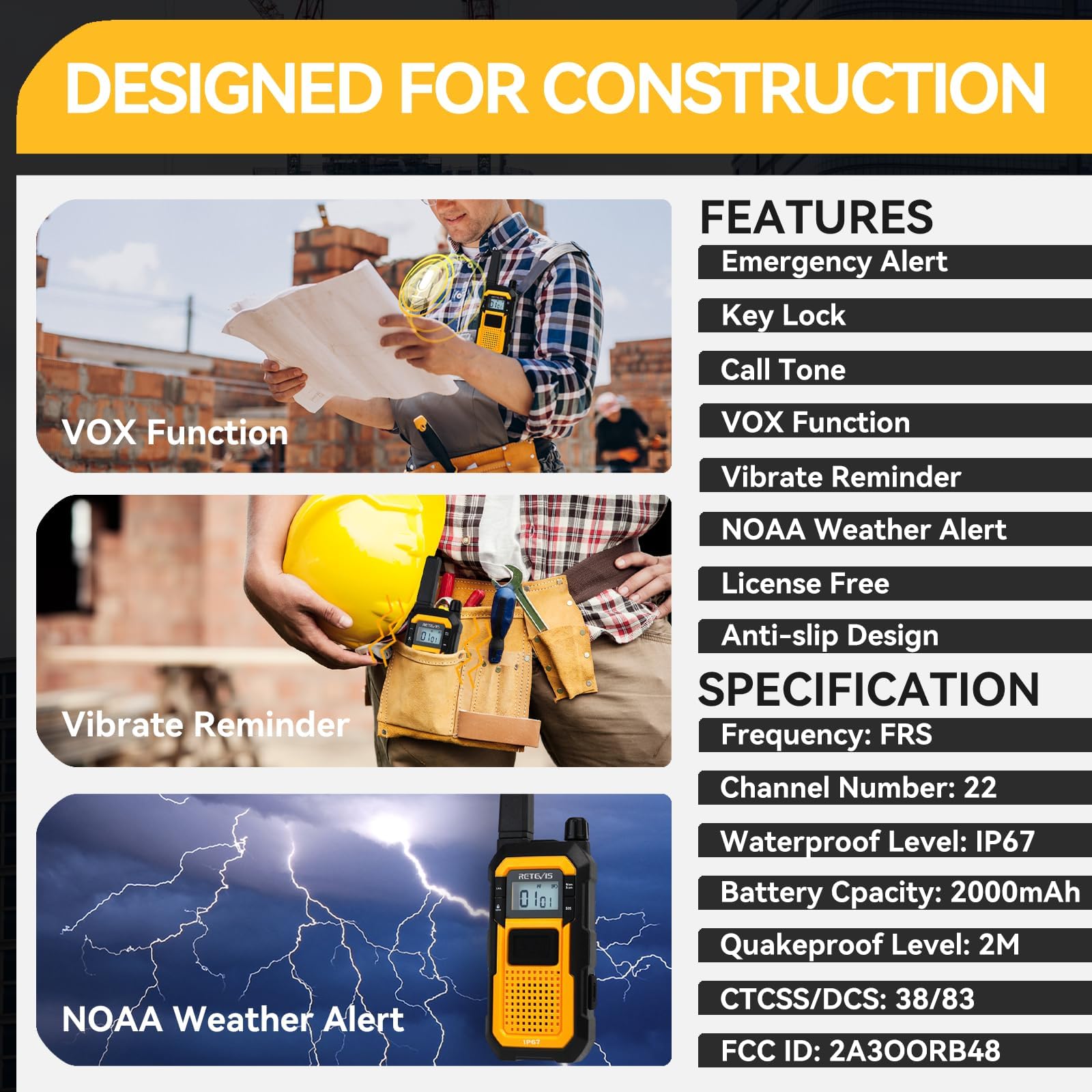 STABLE AND CLEAR - RB48 two way radios support up to 300,000 sq.ft./25 floors of long-distance signal range; making communication more convenient and efficient; FCC ID:2A3OORB48