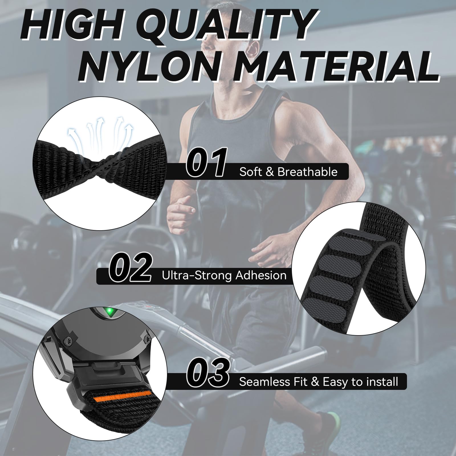 【Adjustable Elastic Strap】Compatible with Garmin Fenix 6 straps/Garmin Fenix 5 straps/Garmin Fenix 7 arm/ankle straps. Features 5 strong fasteners for customizable length adjustment. The 26mm arm/ankle strap fits arm sizes from 7.1 inches to 13.7 inches (180mm-350mm), ensuring a comfortable fit regardless of arm thickness.