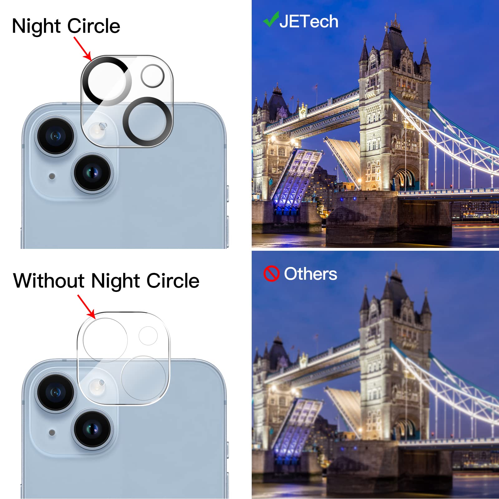 JETech Camera Lens Protector for iPhone 14 6.1-Inch and iPhone 14 Plus 6.7-Inch, 9H Tempered Glass, Anti-Scratch, Case Friendly, Does Not Affect Night Shots, HD Clear, 3-Pack