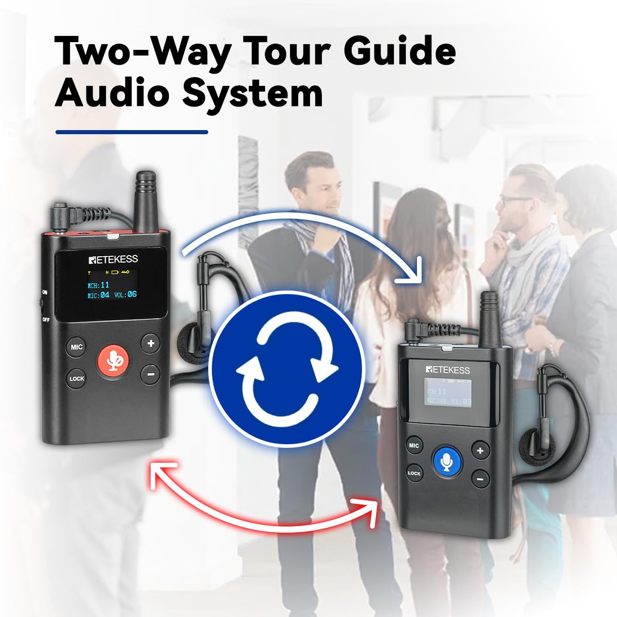 Two-way communication;Retekess TT126 two-way tour guide system supports communication between tour guides and participants, and real-time interaction makes the tour process more interesting