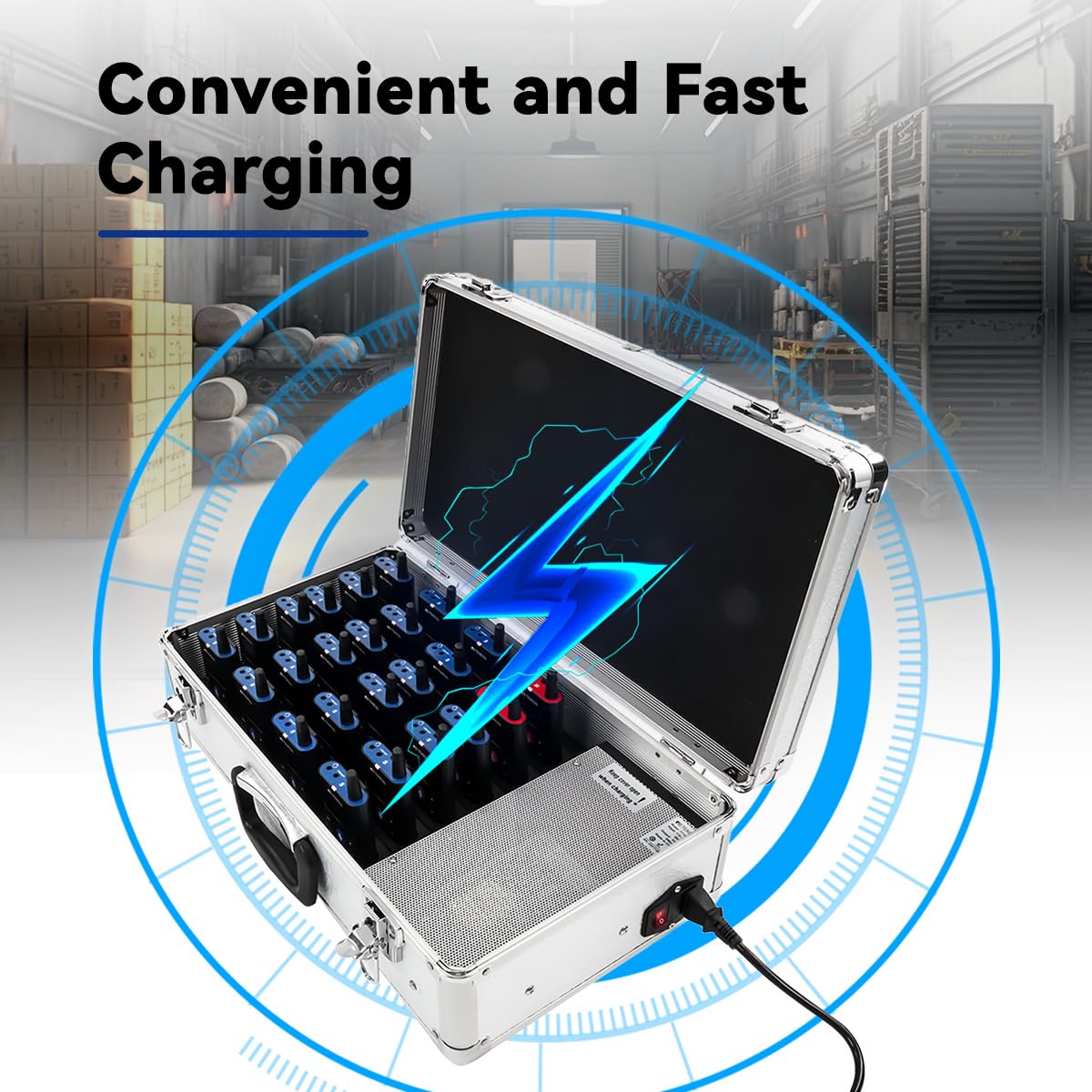 Easy charging;24-port charging case can charge 24 transmitters and receivers at the same time; both the charging compartment and the TT126 intercom are equipped with charging contacts, just place the device into the groove to charge easily