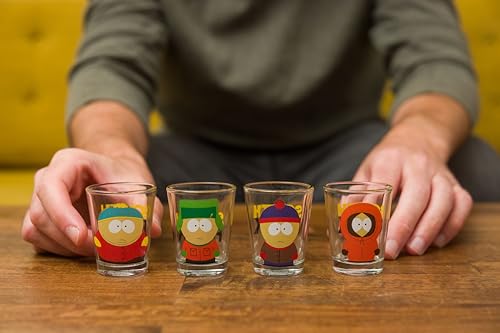 MINI GLASS SET: Have fun with your friends with this beautiful South Park 4pc. 1.5oz, mini glass set. Each glass has a different South Park Main Characters Poses