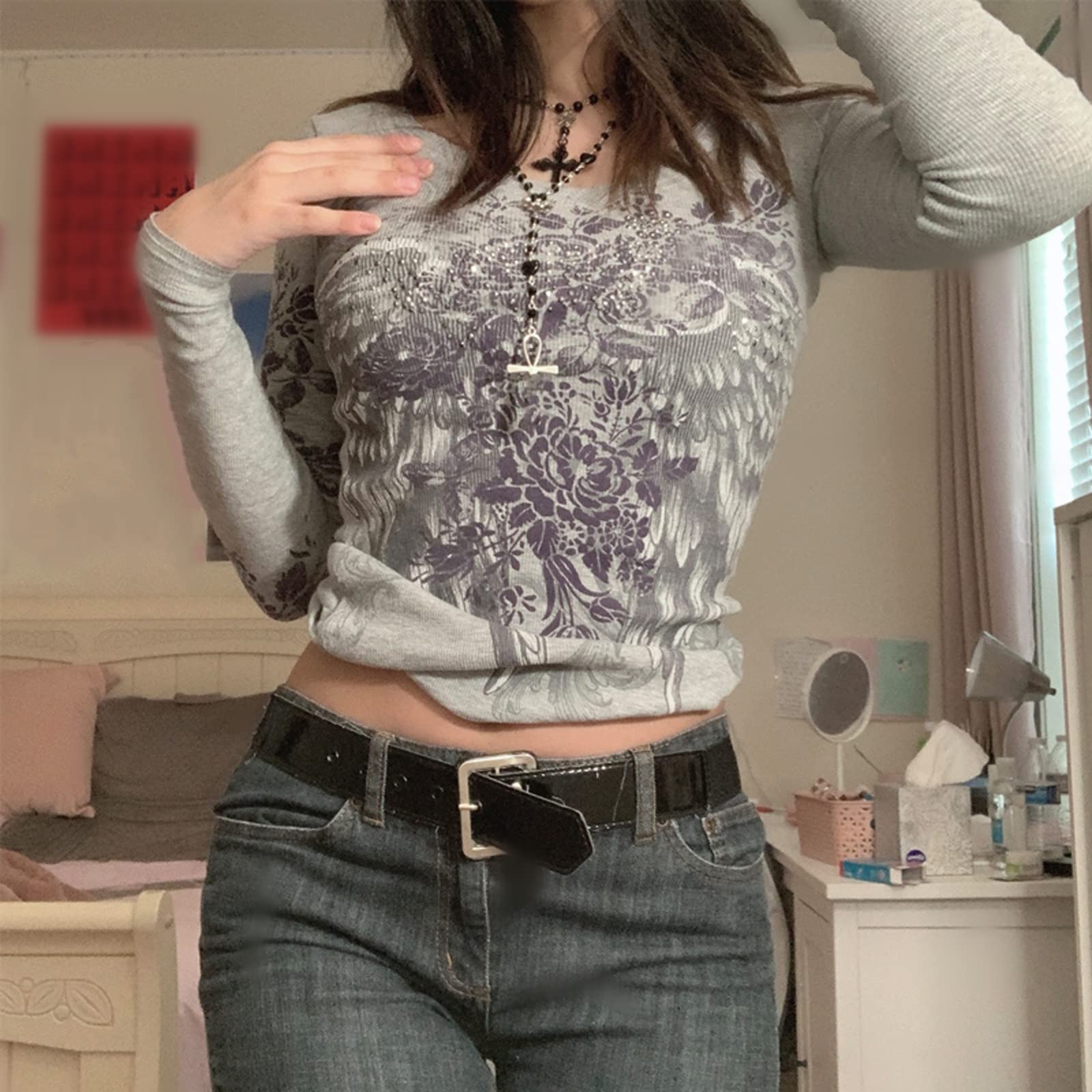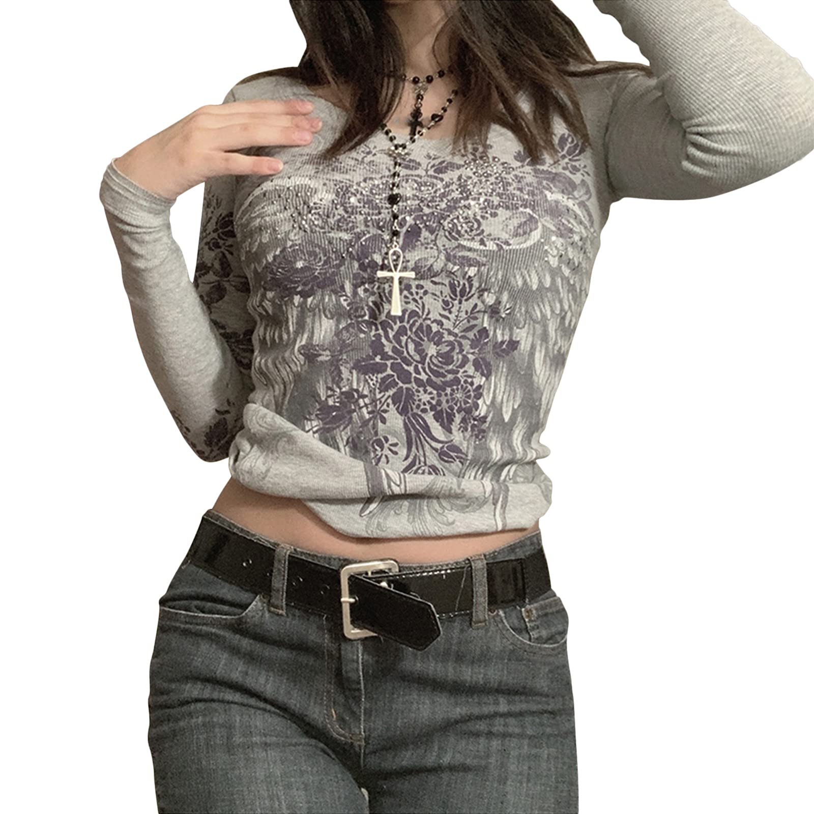 Package & Size: 1 x Women wing flower printed long sleeve t-shirt; Size: S/M/L, please refer to the size details in the description, image, or size chart before ordering.
