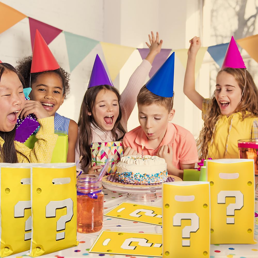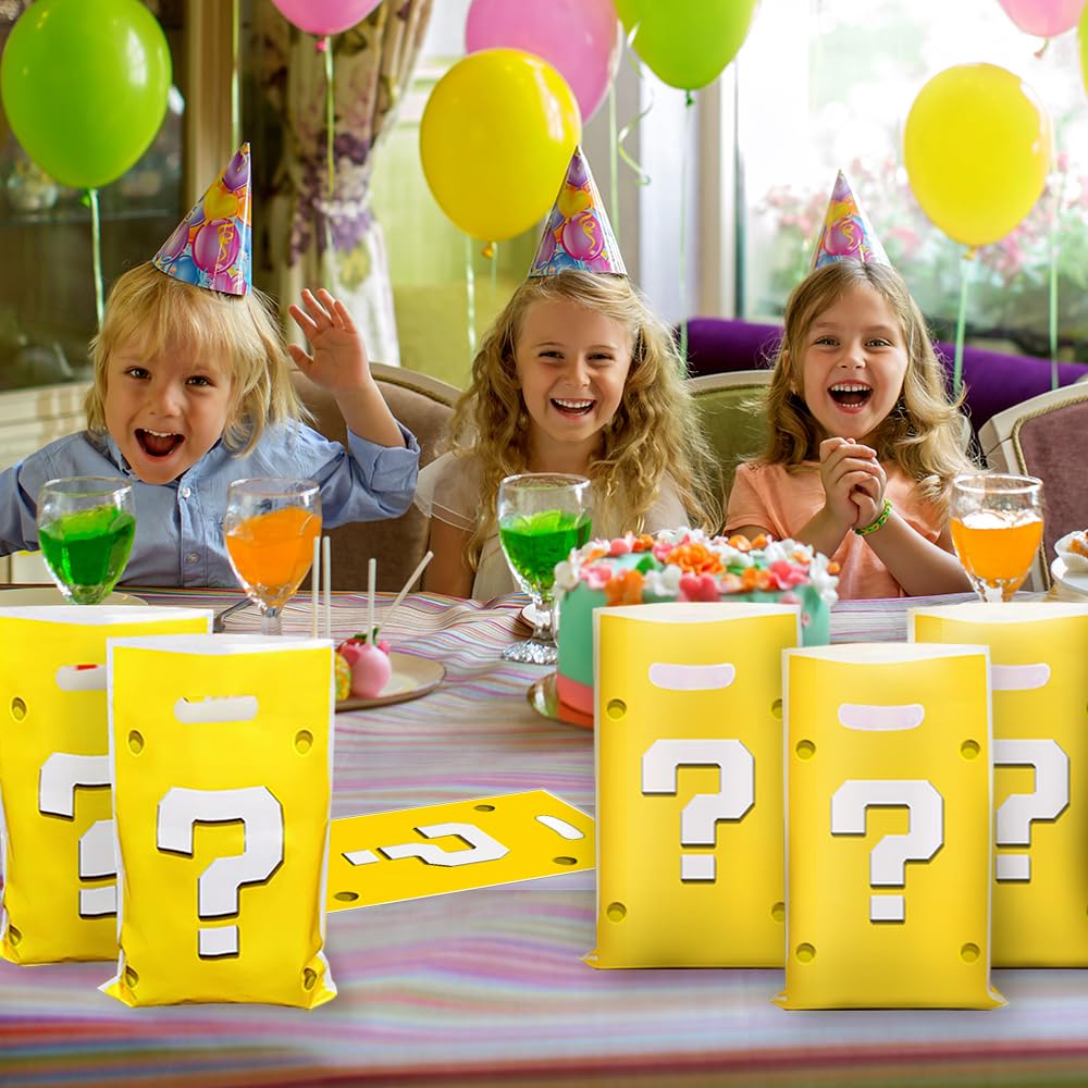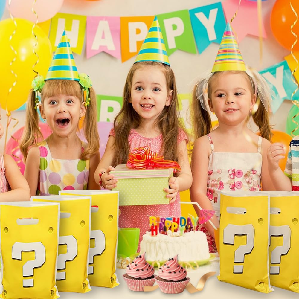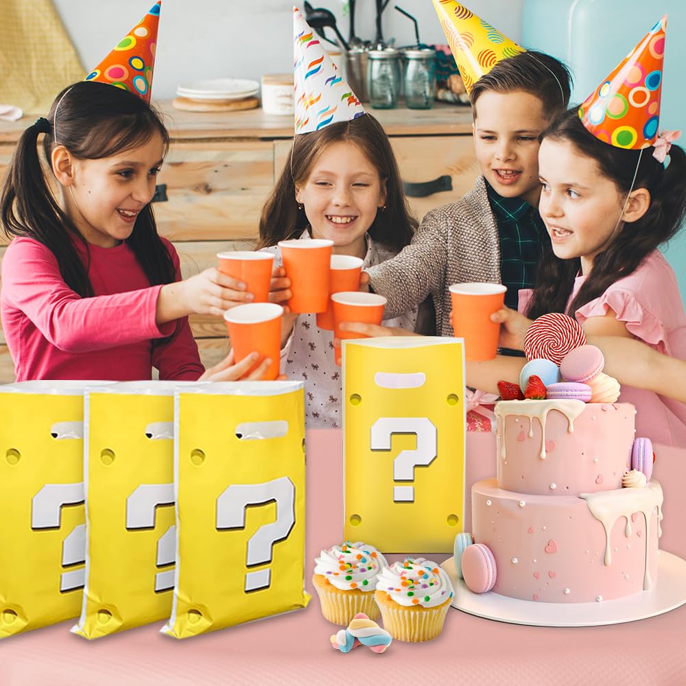 Looking for a unique and practical gift bag set? Consider our package, which includes 30 bright yellow gift bags, each adorned with a distinctive question mark design to instantly grab your guests' attention.