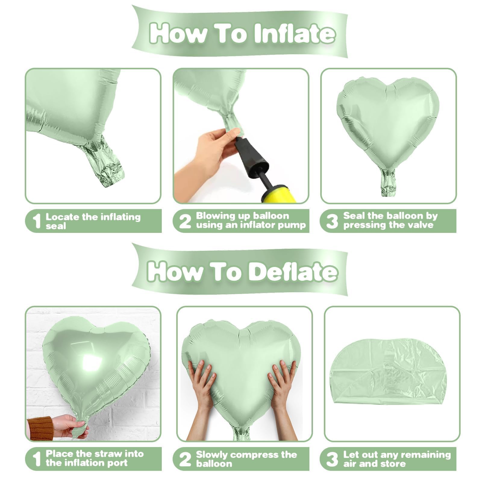 Easy Setup: Inflate the sage green white heart balloons with a balloon pump or helium tank. After inflating, secure the sage green white heart balloons with the included ribbon for a polished look. These sage green white heart balloons are easy to assemble and disassemble, making decorating quick and effortless.