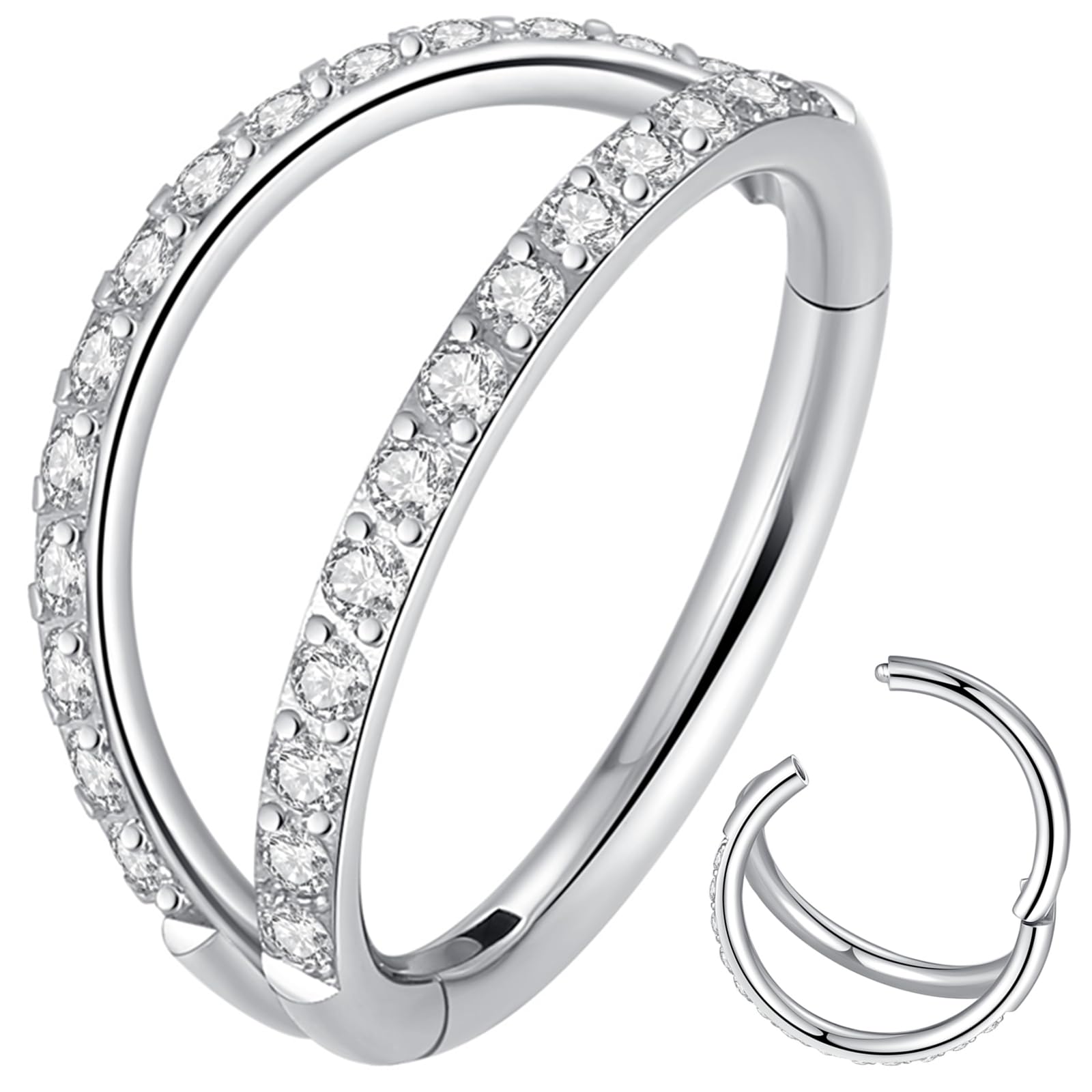 Seamless Nose Ring Hoop: Gauge size: post part [20G(0.8mm)], CZ part [16G(1.2mm)]; Inner diameter: 7mm(0.28 inches); Material: 316L stainless steel; One order includes 3 pieces of hinged segment ring, comes in various styles to meet your fashion needs: sparkly CZ nose hoop, double hoop nose ring, dainty single septum hoop;We've provided the size comparison chart for you reference