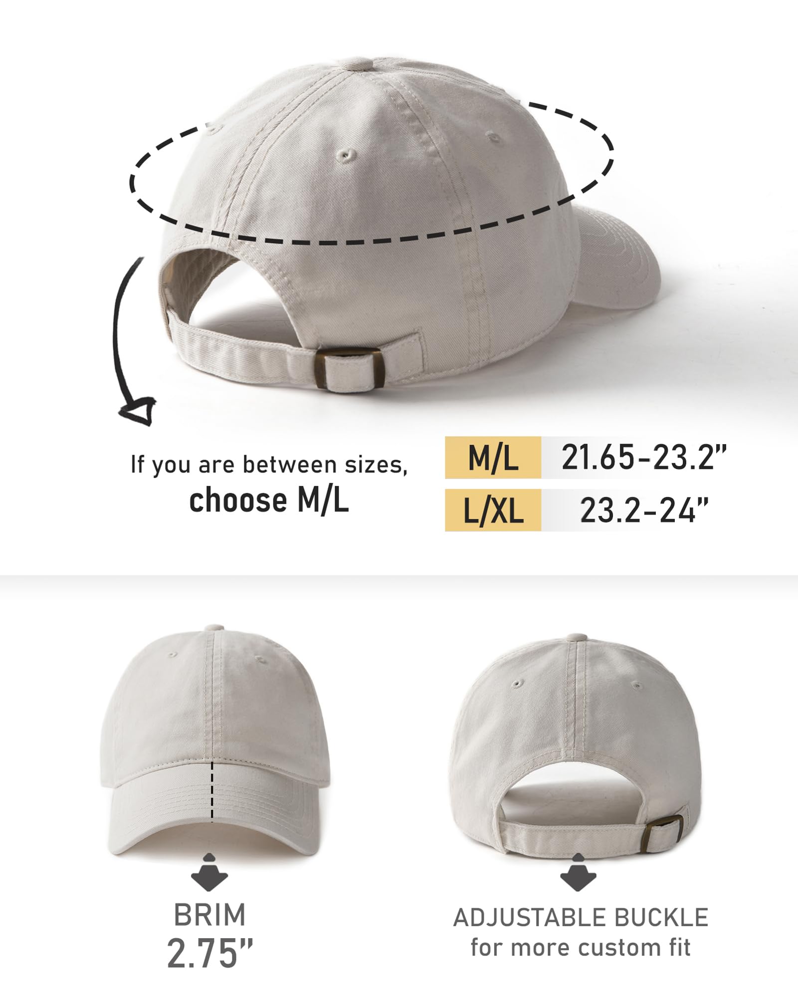 Upgraded Size:We specially made our baseball cap with 2 size, Size M(21.65-23.2'') is recommended for small and normal head size and L(23.2-24'') for large head