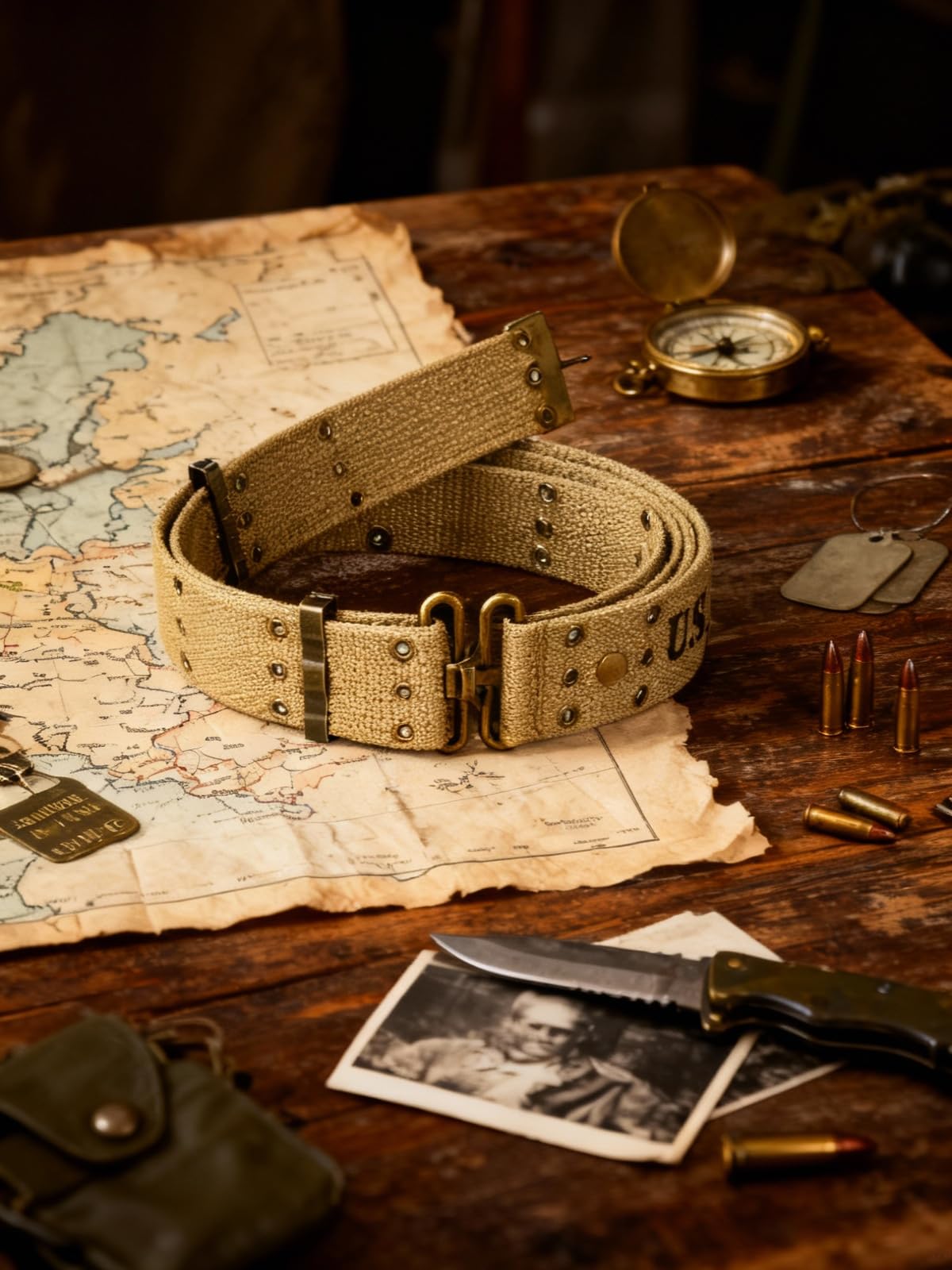 WWII Gear: Military-grade canvas belts and military pistol belts from the WWII era, finely handcrafted replicas, perfect for reenactment or collection