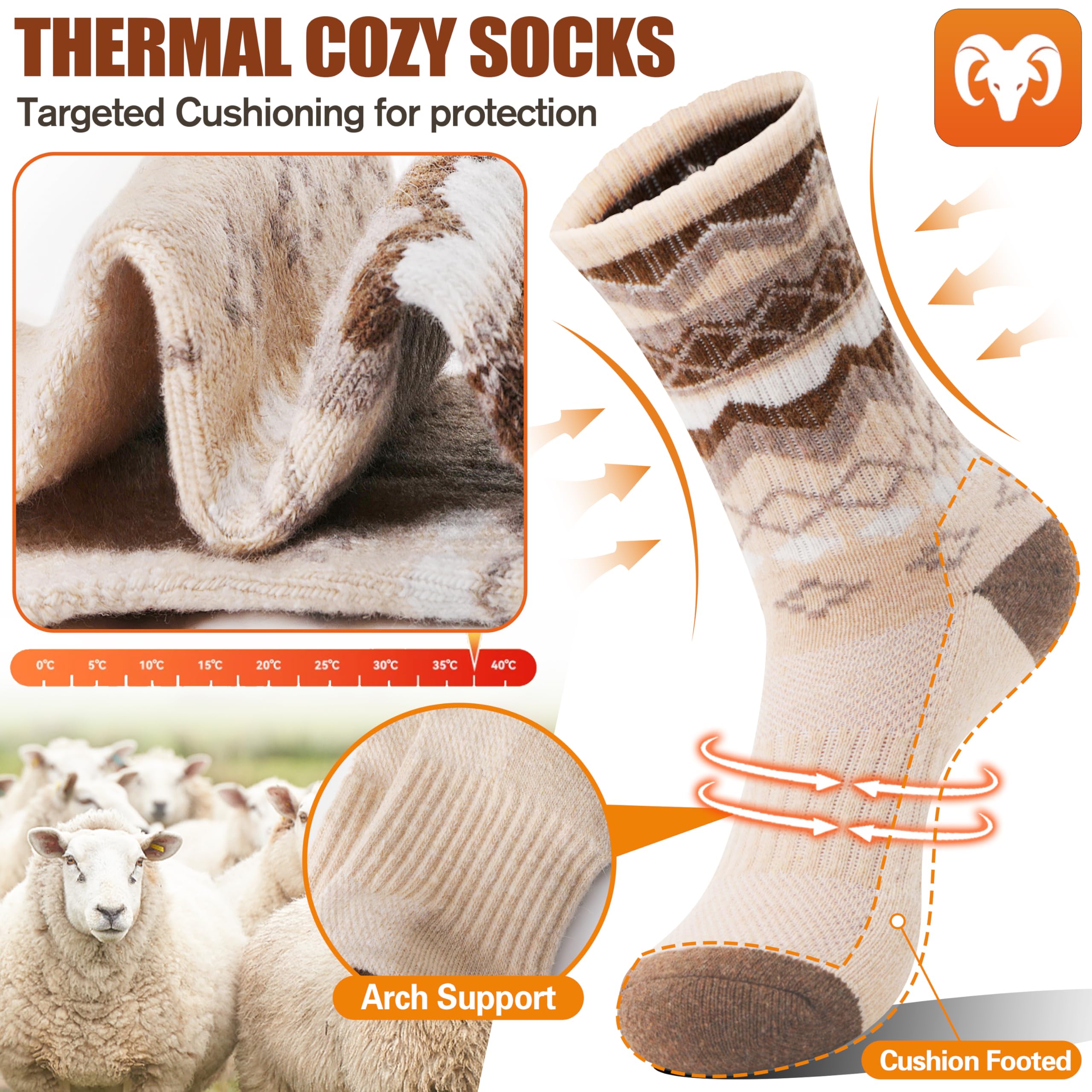 TWO SIZE OPTIONS - EBMORE merino wool hiking socks have 2 sizes as options, Medium & Large .Medium Size fits for US women’s shoe size 5.5-10.Large Size fits for US women’s shoe size 10-13. A package includes 5 pairs womens warm socks at a value price.