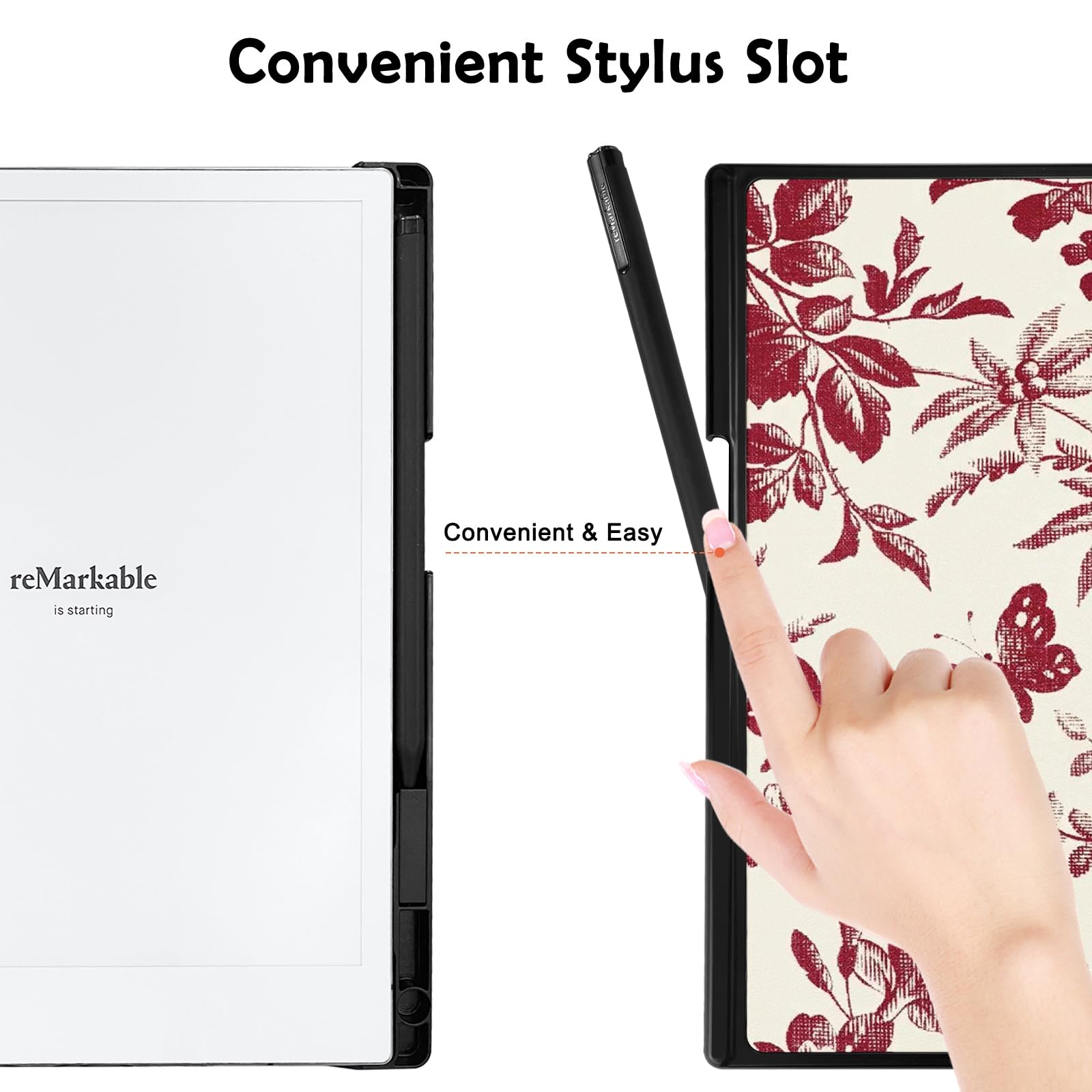 【new built-in pencil holder】-Our Tablet case Specifically designed with a pen holder to protect and store your reMarkable marker.In addition, designed with a small storage space, you will get 5 nibs that you can change at any time very conveniently!(Note: Non-original remarkable pens may fall out!)