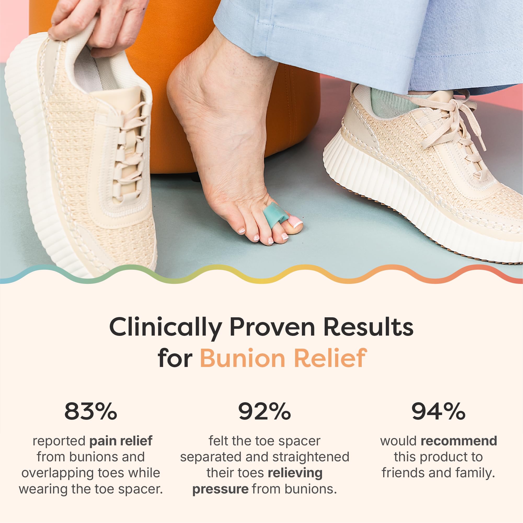 Comfortable and Durable - The soft, flexible gel toe ring conforms to your toes, fitting comfortably in any shoes and allowing you to stand or walk for longer in comfort. Our toe separators can be worn during the day and at night to provide continuous toe pain relief.