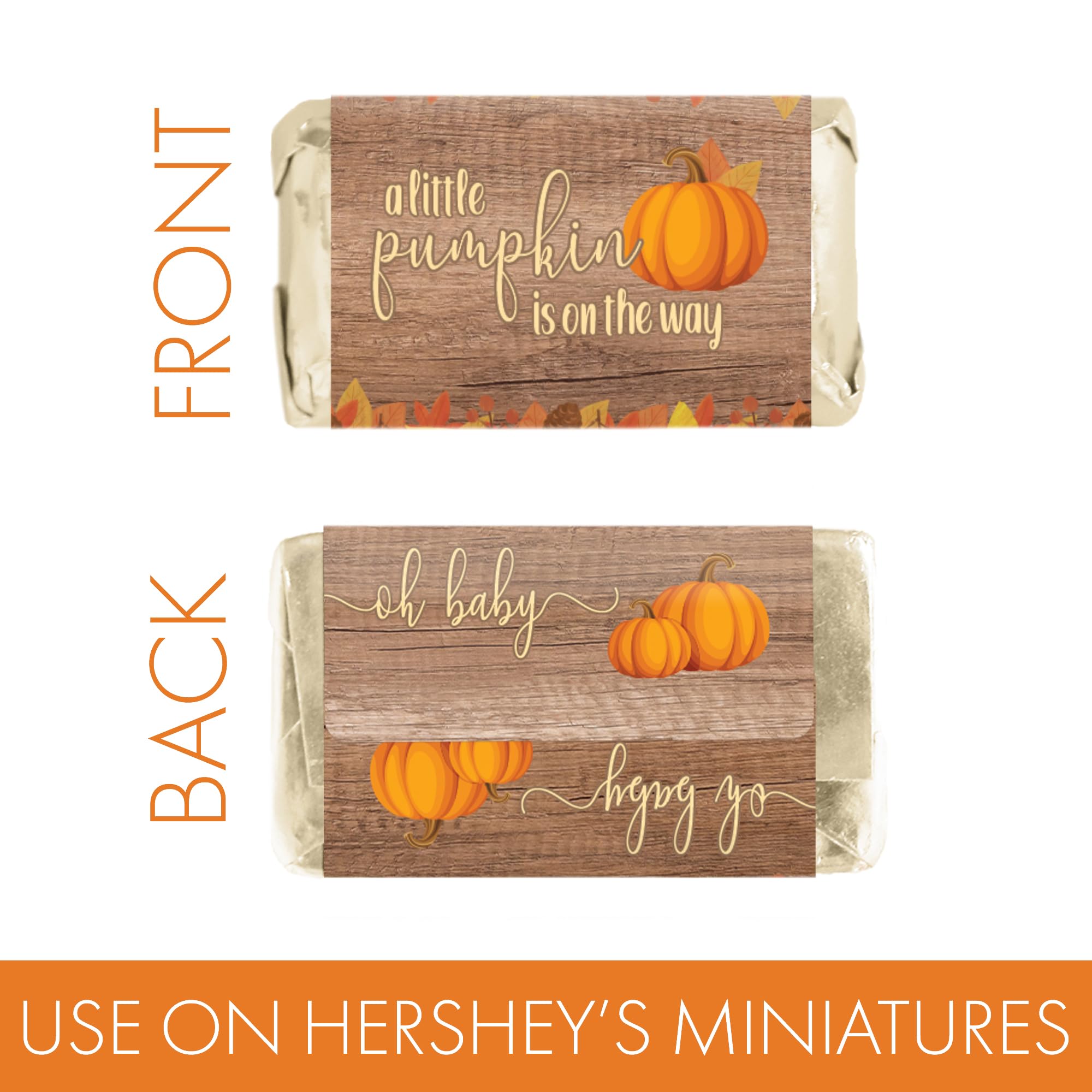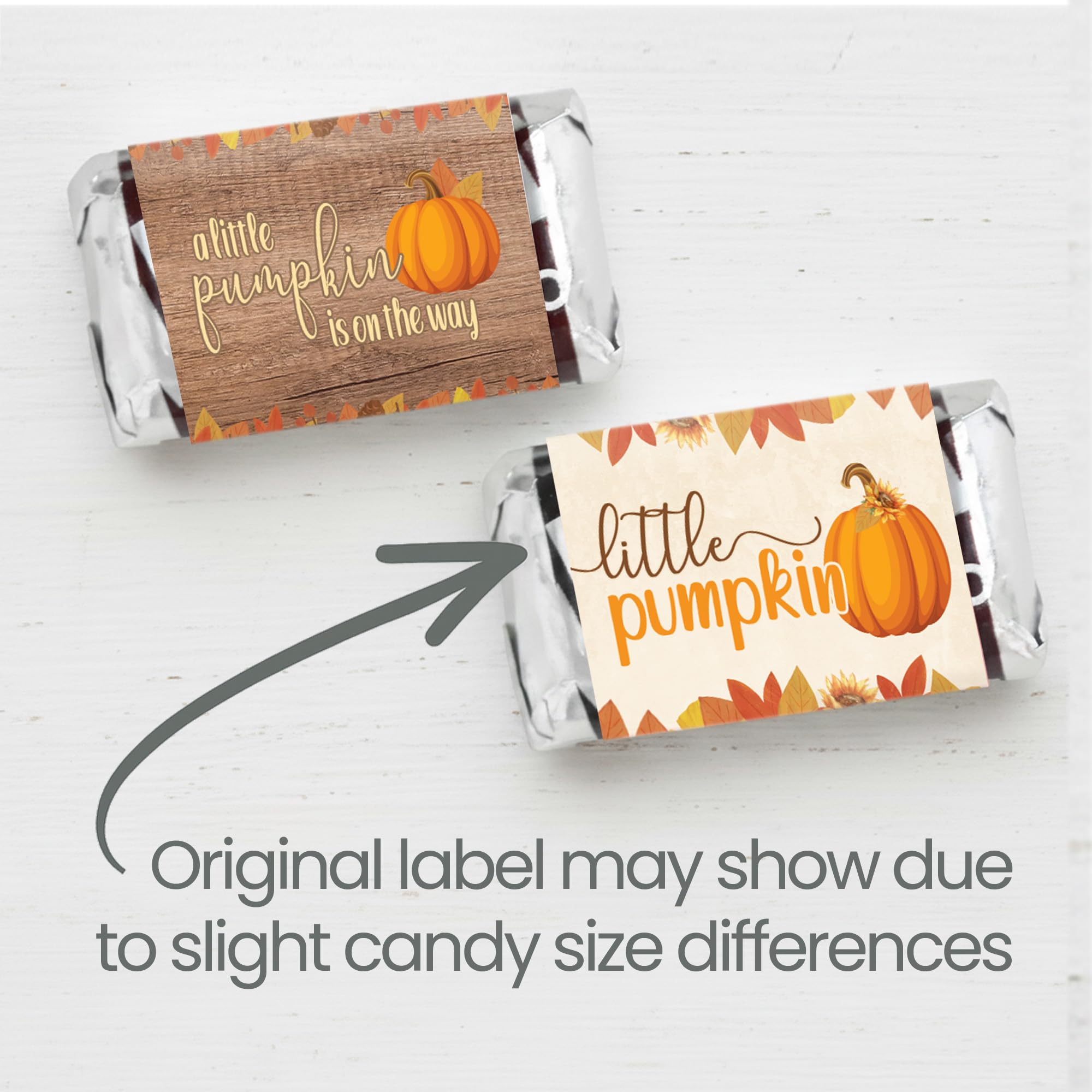 42 COUNT: Rustic fall little pumpkin baby shower mini candy bar label stickers features warm autumn colors, leaves, and a “Little Pumpkin” design ideal for seasonal baby showers.