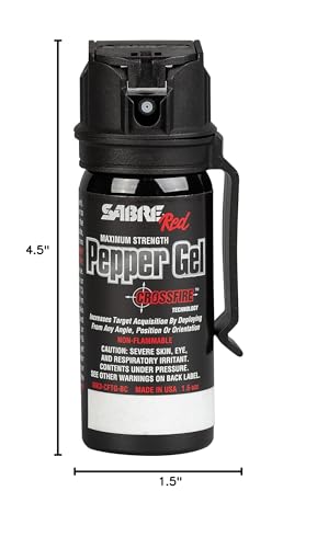 Stay safe with SABRE. Boasting the same police-strength protection as law enforcement, SABRE is the most popular formulation carried by police worldwide and contains UV Marking Dye to help police in suspect identification. This SABRE Crossfire Pepper Gel with Belt Clip provides you protection against multiple threats with a maximum spray range up to 20-feet. Backed by independent laboratory testing & SABRE’s industry exclusive in-house HPLC lab, we guarantee consistent, maximum strength capsaicinoid levels in every canister to help give you peace of mind, confidence & safety when you need it most. SABRE’s Crossfire technology allows the pepper gel to be sprayed at any angle, even upside down, maximizing target acquisition and making it more dependable against moving threats. The Fast Flip Top safety mechanism prevents accidental discharge, and the attached belt clip allows you to carry your pepper gel with you when commuting to work or home. Pepper gel virtually eliminates wind blowback with no in-air atomization and can even be used safely indoors as it sticks to the target. SABRE Pepper Gel is made in USA. Family owned and operated for more than 45 years, SABRE is the #1 brand trusted by consumers worldwide for pepper spray and is a leader in developing safety programs and safety videos to maximize end users’ safety. Empower yourself with extreme stopping power when you need it most.