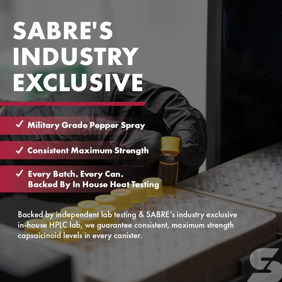 MAXIMUM STRENGTH: Backed by independent lab testing & SABRE’s industry exclusive in-house HPLC lab, we promise consistent, maximum strength capsaicinoid levels in every canister to help give you peace of mind, confidence & safety when you need it most.