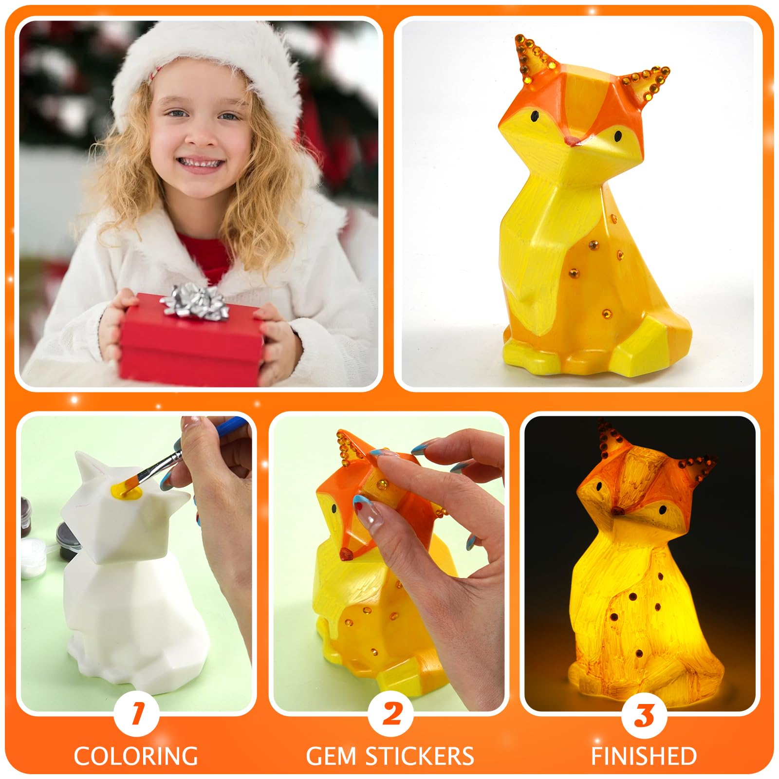 Funny Crafting Experience: Whether you're a beginner or an experienced acrylic painter, the foxnight light painting kit has something for you. After finish this arts and crafts project, the colorful fox lamp transforms into a charming night light that works wonderfully as a decorative light. Enjoy a creative experience and bring your cute fox night light to life!