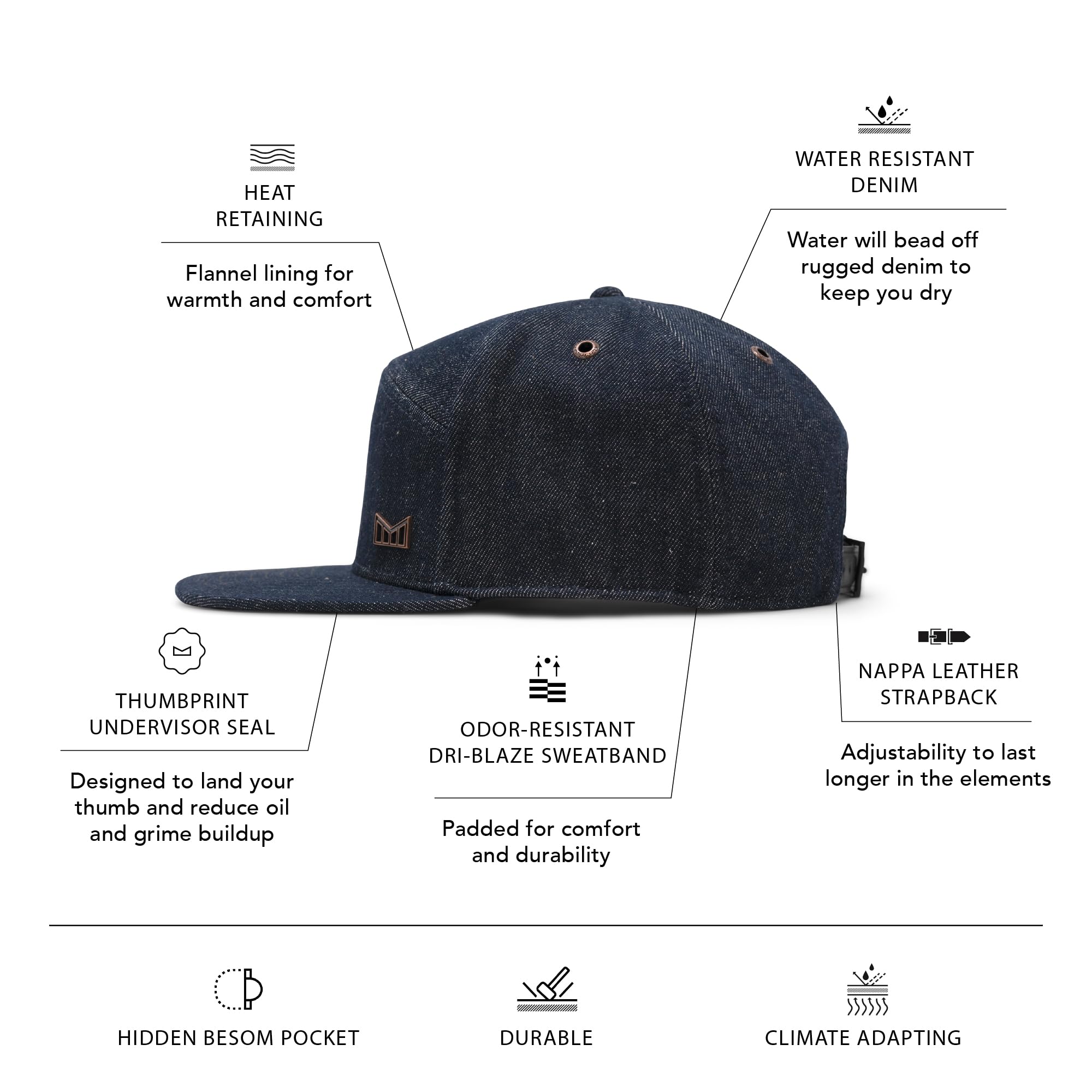 MICROFLEECE LINING: Our buttery soft microfleece lining provides just enough warmth in cooler temperatures. Includes a napa leather strapback, suede undervisor, hidden besom pocket and sweatband.