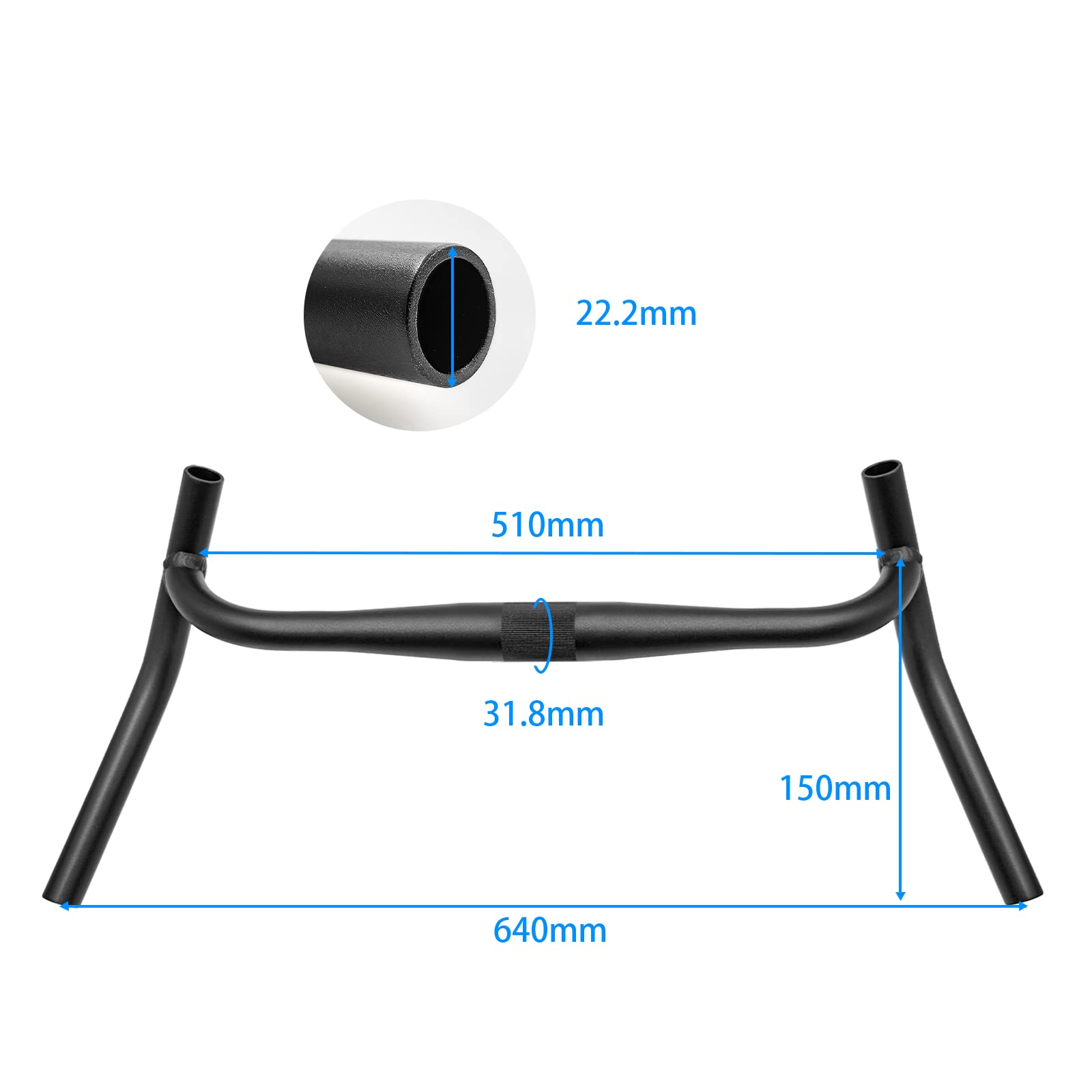 Material: Aluminum alloy Color: Balck Size: clamp diameter: 31.8mm, bar end diameter:22.2mm, Length: 430*510mm,470*600mm,510*640mm Siutable Bike: Universal fits for most bikes especially gravel bikes, MTB.