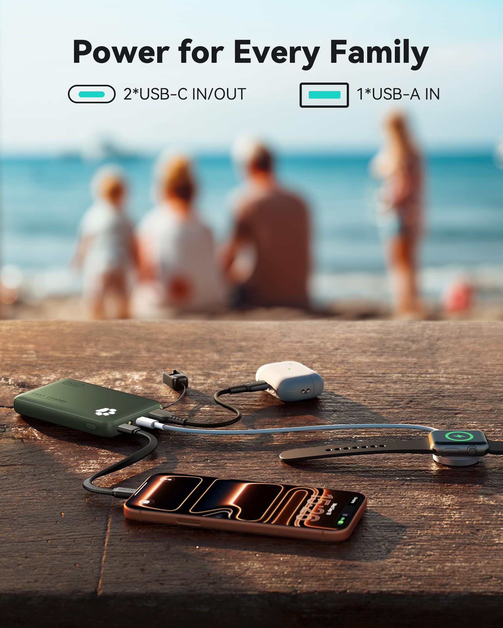 Only 5% Got USB-C IN & OUT: INIU stands out with its unique dual USB-C ports, both for input and output. Unlike others only recharge via USB-C port, INIU can charge all devices with your USB-C cables directly.