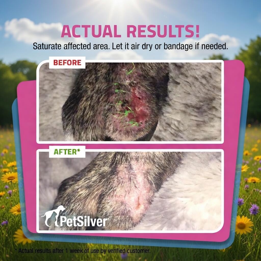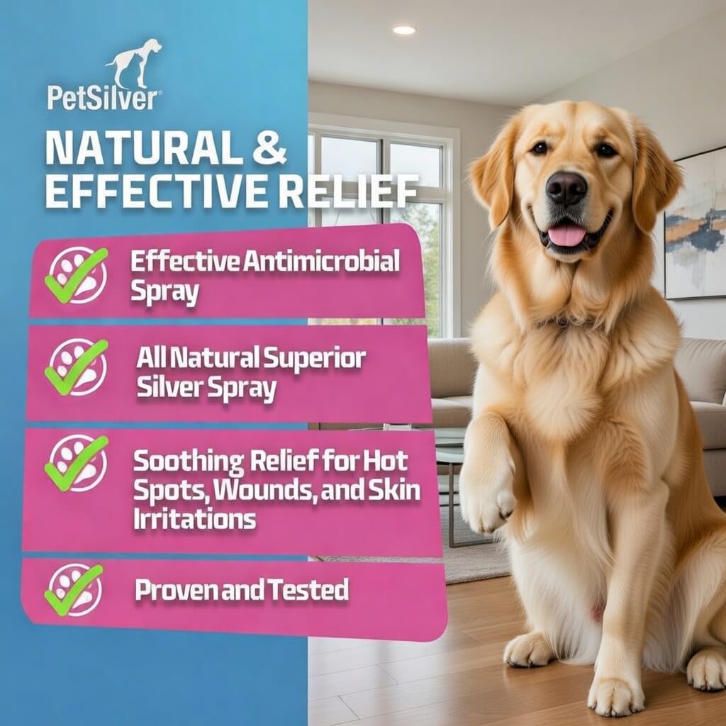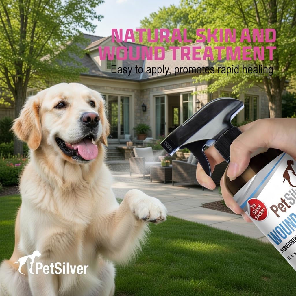 SOOTHING RELIEF FOR PETS: PetSilver Wound & Skin Spray is designed to provide relief from hot spots, wounds, rashes, burns, and skin irritations for dogs and cats. This pet wound spray works as a hot spot spray and a wound care solution for dogs, promoting natural healing for your furry friends. Safe for use on paws, face, ears, nose, and sensitive skin areas, this dog wound spray effectively soothes itchy lacerations. For optimal results, thoroughly saturate the affected area with the sprayer.