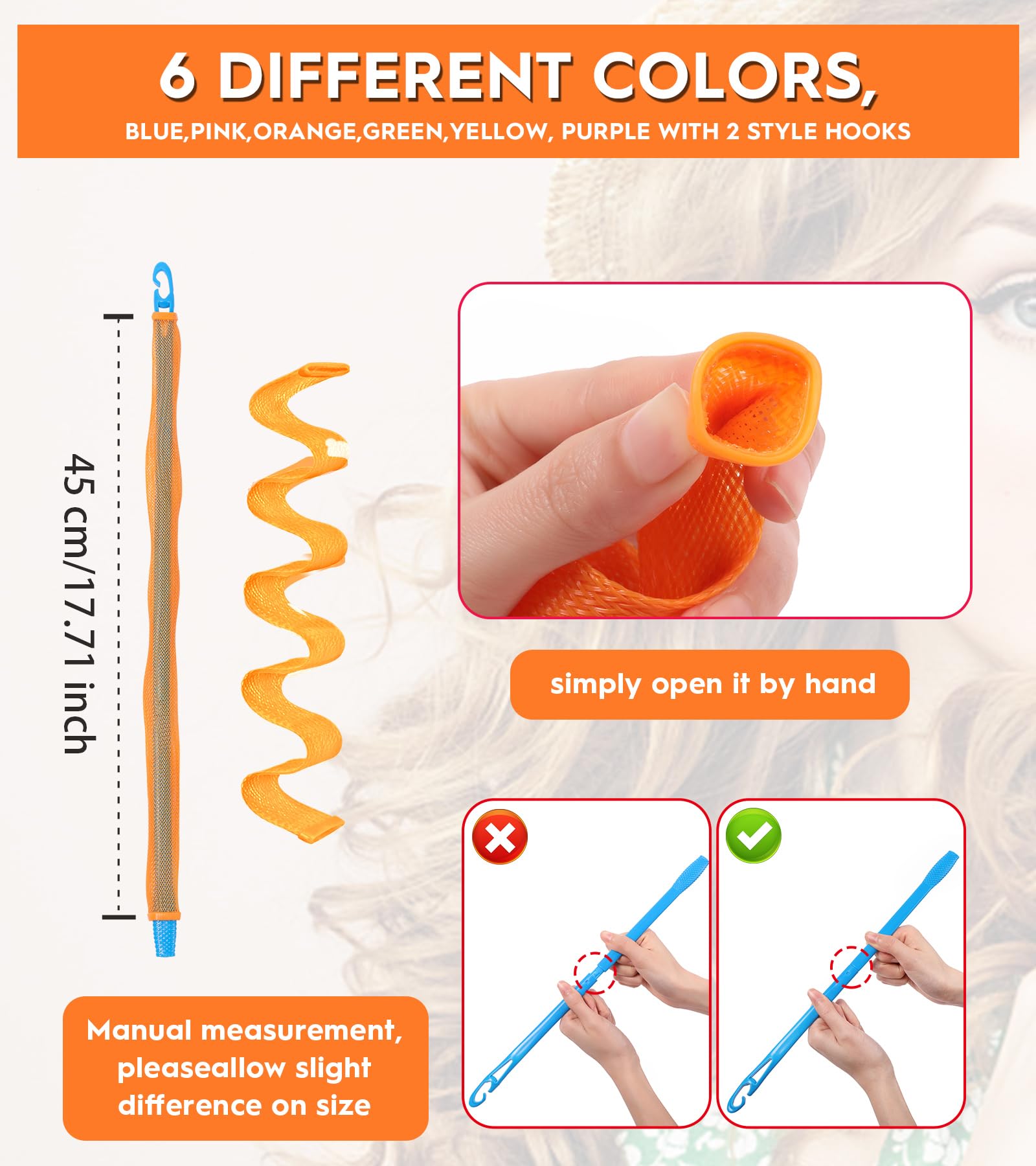 【Sufficient Quantity】You will receive 30 pieces of spiral wave formers in 6 different colors including pink, blue, yellow, green, orange and purple, 5 pieces of each color, also comes with 2 styling hooks. Measuring 45cm/17.71in, enough quantity to meet your needs for everyday curls