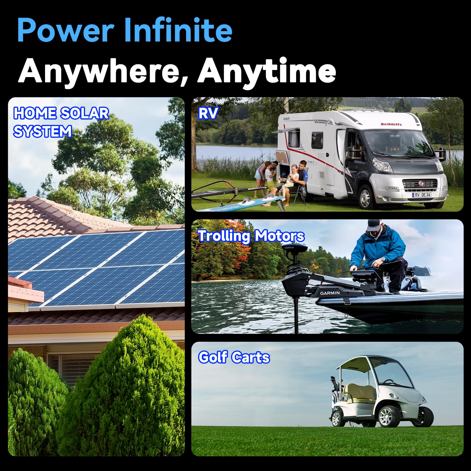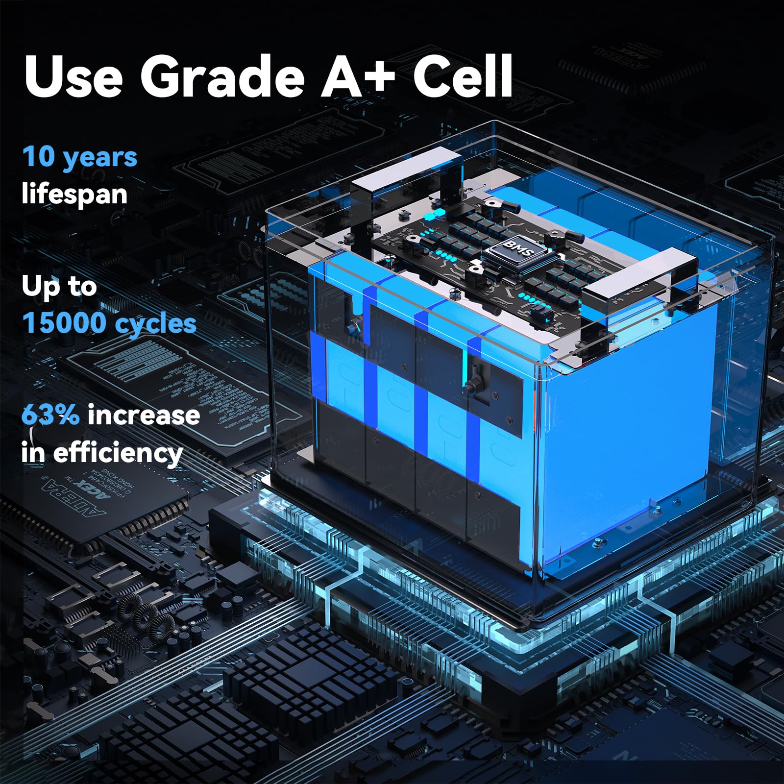🍃High Performance: Our LiFePO4 battery has a capacity of 100Ah and a standard voltage of 12.8V. It features A+ grade cells and can endure up to 15000 cycles. It has obtained SDS/UN38.3/FCC/CE/ROHS certifications, ensuring its quality and safety. You can easily connect up to 4 batteries in series or 4 battery packs in parallel, providing a remarkable capacity of up to 20.48kWh.
