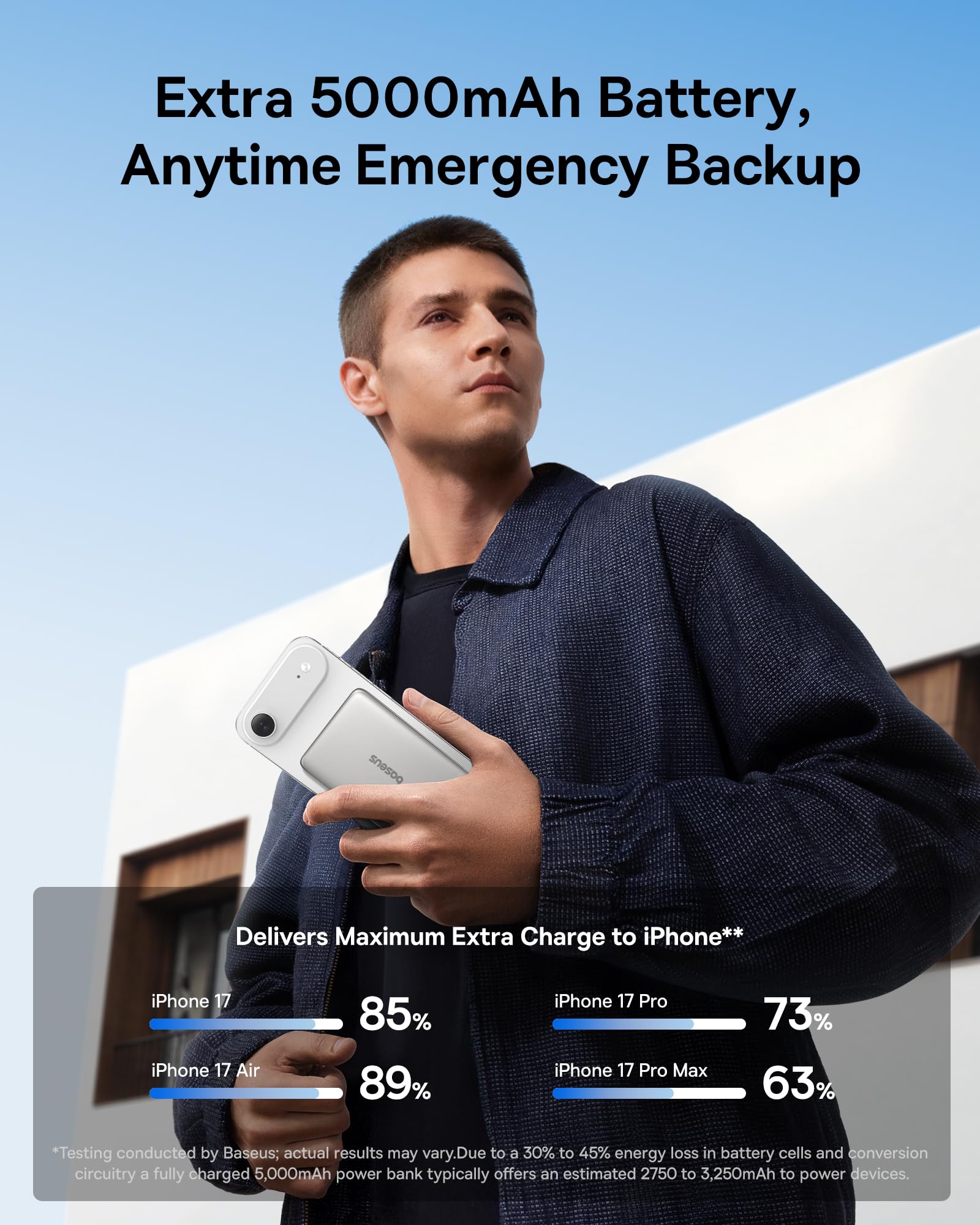 đ ăAbout Basuesă: Baseus hold 2,100+ global patents and won 170+ Industrial design awards. Trusted by over 180+ countries and over 300+ million users, with up to 99.98% customer happiness. Reflecting our commitment to quality and seamless user experiences. Our portable charger iphone meet the highest global standards, certified by FCC, UL, TĂV, DOE, CEC, UN, IEC and RoHS, ensuring safety, energy efficiency, and environmental compliance.
