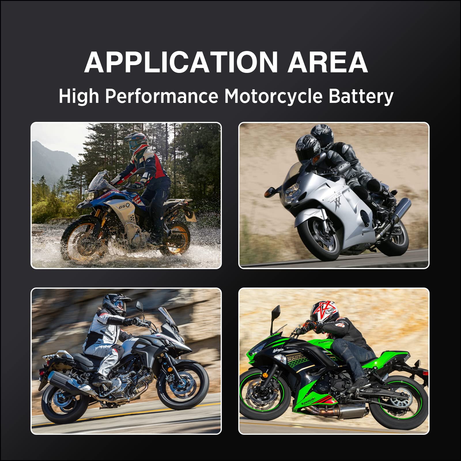 đŸ”‹Using safe: The battery is made of shock-resistant materials to reduce the impact of violent vibrations of motorcycles. And we conduct high-low temperature,expansion, fire-proof, shock, and leakage tests for all battery to ensure the safety of using