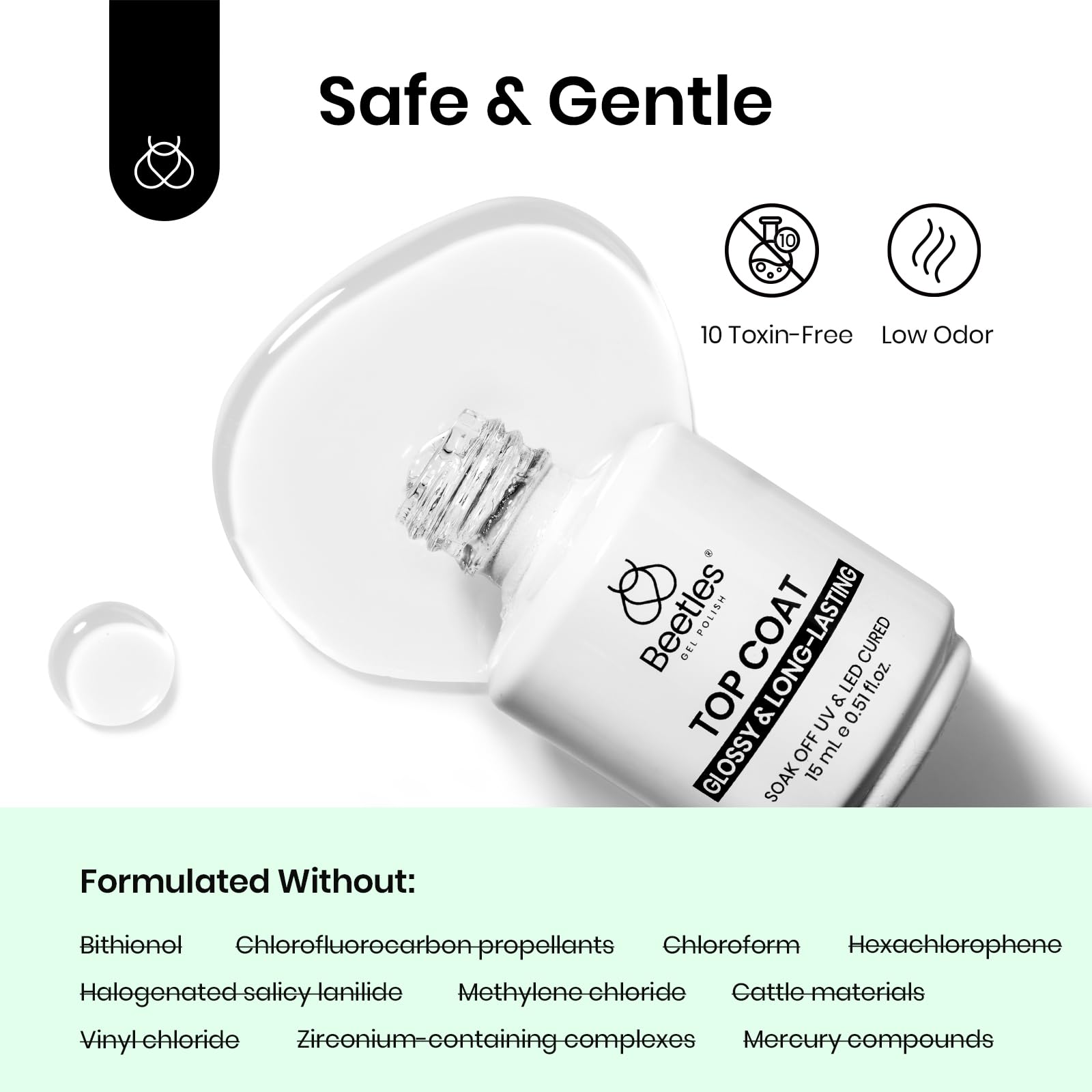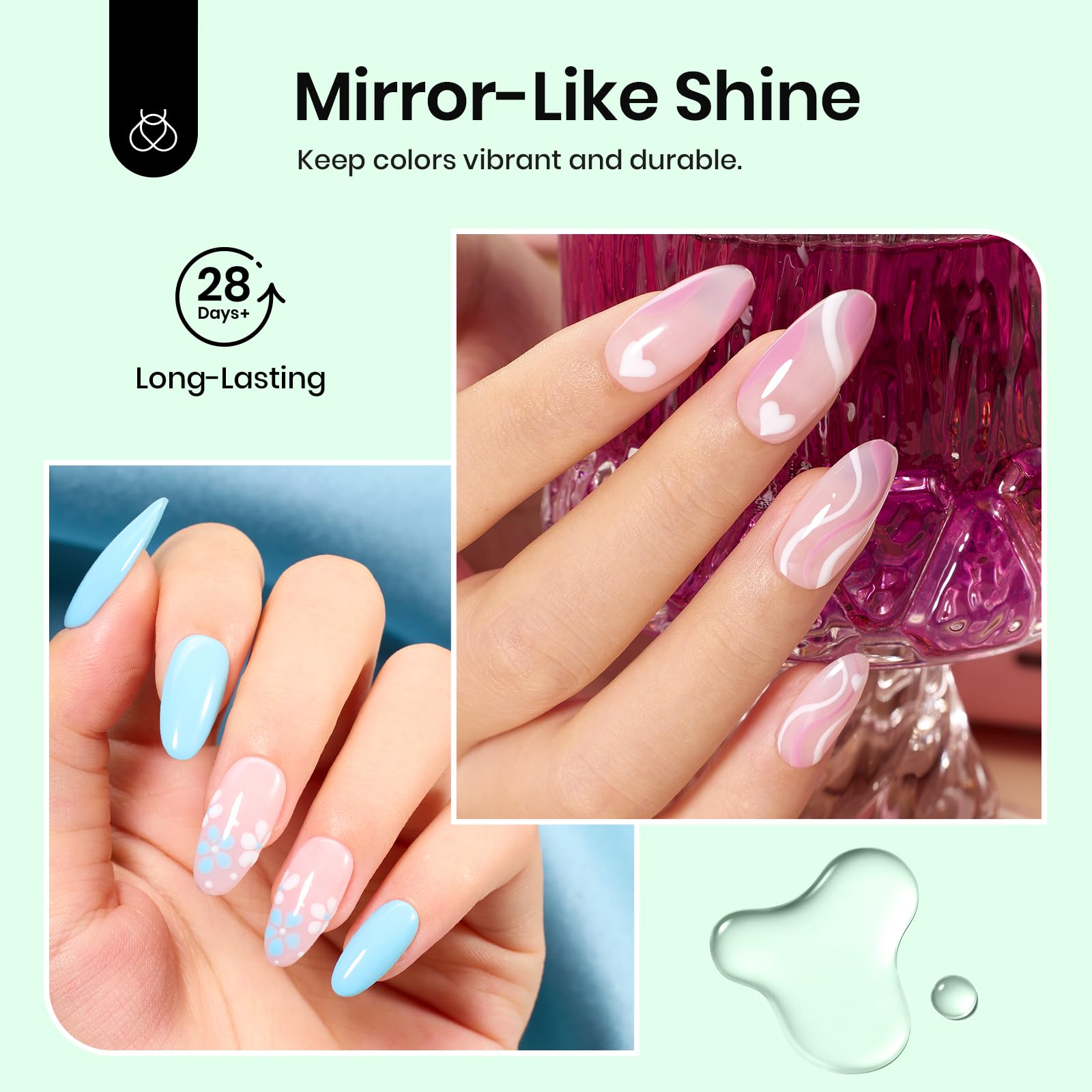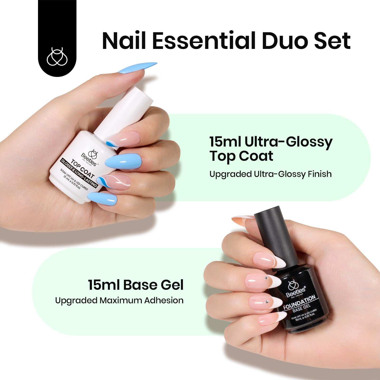 Long-lasting: Beetles' glossy top and base coat gel polish is durable and wear-resistant, bringing you a long-lasting mirror-smooth effect; normal use, lasting for more than 28 days.