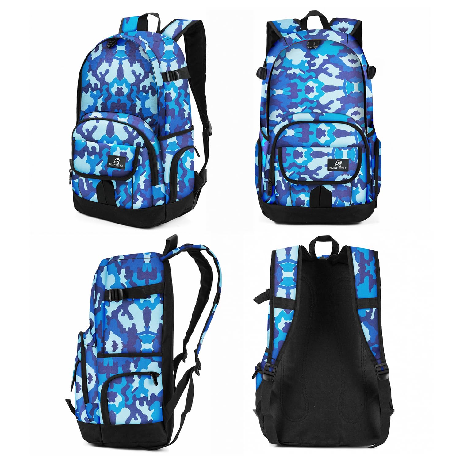 Description Flexible and ample storage space with scientific and reasonable layout design in Ricky-H’s conveniently portable bag makes getting out the door in the morning much easier. Multipockets layout allows small items (eg. Phone, pens, keys, chargers, power bank, sunglasses, ect.) and big items (eg. Laptop, A4 binders, textbooks, notebook, lunch box, sweater, towel, ect.) being organized neatly. -Suitable Occasion: School, Travel, Camping, Hiking, Gym, Office, Gift, Versatile. Whether to cater your day-to-day organizing basis or your "extra-curricular" uses, our backpack is versatile enough for many use, to be a book bag during the week and a travel backpack on weekends. Great choice as school bookbag or daypack, overnight backpack. Or even as diaper bag. -Applicable People: Men, Women; College/University Campus Students, High school, Middle school, Elementary, Primary school boys & girls; Parents, ect.)-Comfort with featuring ergonomic designed adjustable padded reinforced shoulder straps, makes the backpack all day use as a breeze. -High-quality, strong, long lasting nylon fabric builds our sturdy and solid backpack with great performance on water-resistance, anti- striking and anti-scratching. -Twin metal zippers with fabric flaps over to keep water out of the backpack and last much longer than plastic ones. Easy at opening and closing the backpack.Double stitching at stress points adds valuable security to seams, handles, and straps, enhancing the durability. And additional top handle provides extra help while lifting or moving the backpack. *Notes:1. Differences of 0.5-1 inch may occur due to manual measurement. 2.Item color displayed in photos may vary slightly from the actual product due to monitor color settings.