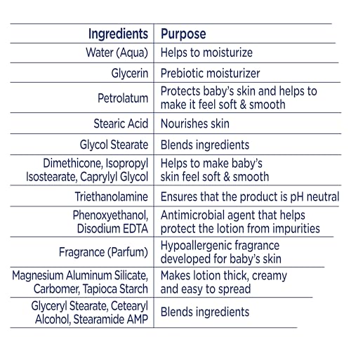 Safety-tested: Our caring baby lotion formulas are created without dyes, parabens, or phthalates and ophthalmologist, dermatologist, and pediatrician tested. Suggested Age: Newborn and Up