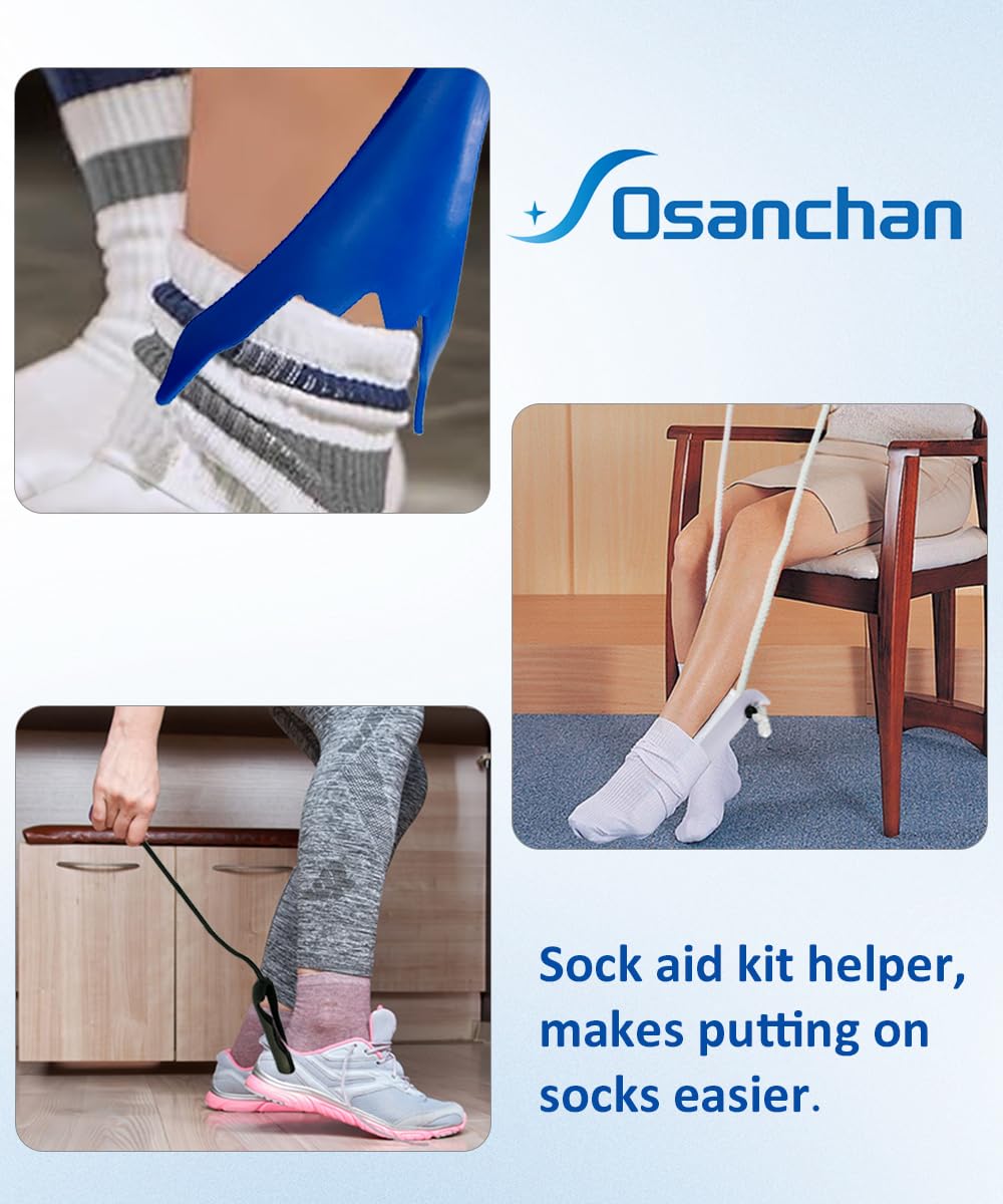 Effortless Sock Wearing: No more bending or straining! Osanchan upgraded sock aid lets you slip on socks quickly and effortlessly. Simply place the sock on the tool, slide your foot in, and pull. With a longer anti-slip pad for better stability, dressing becomes even smoother and more comfortable.