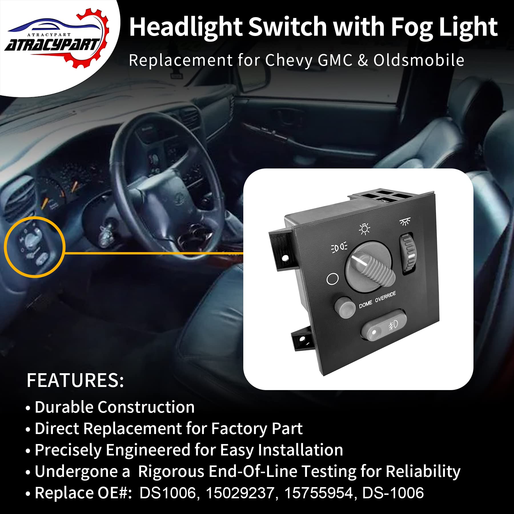 【OE CHECK REQUIRED!】Replace OE#: 15029237, 15755954, DS1006, DS-1006. This Blazer dimmer light switch is manufactured to the OE specification to provide factory-fresh appearance and direct-fit. OE connector helps ensure a solid, positive connection.