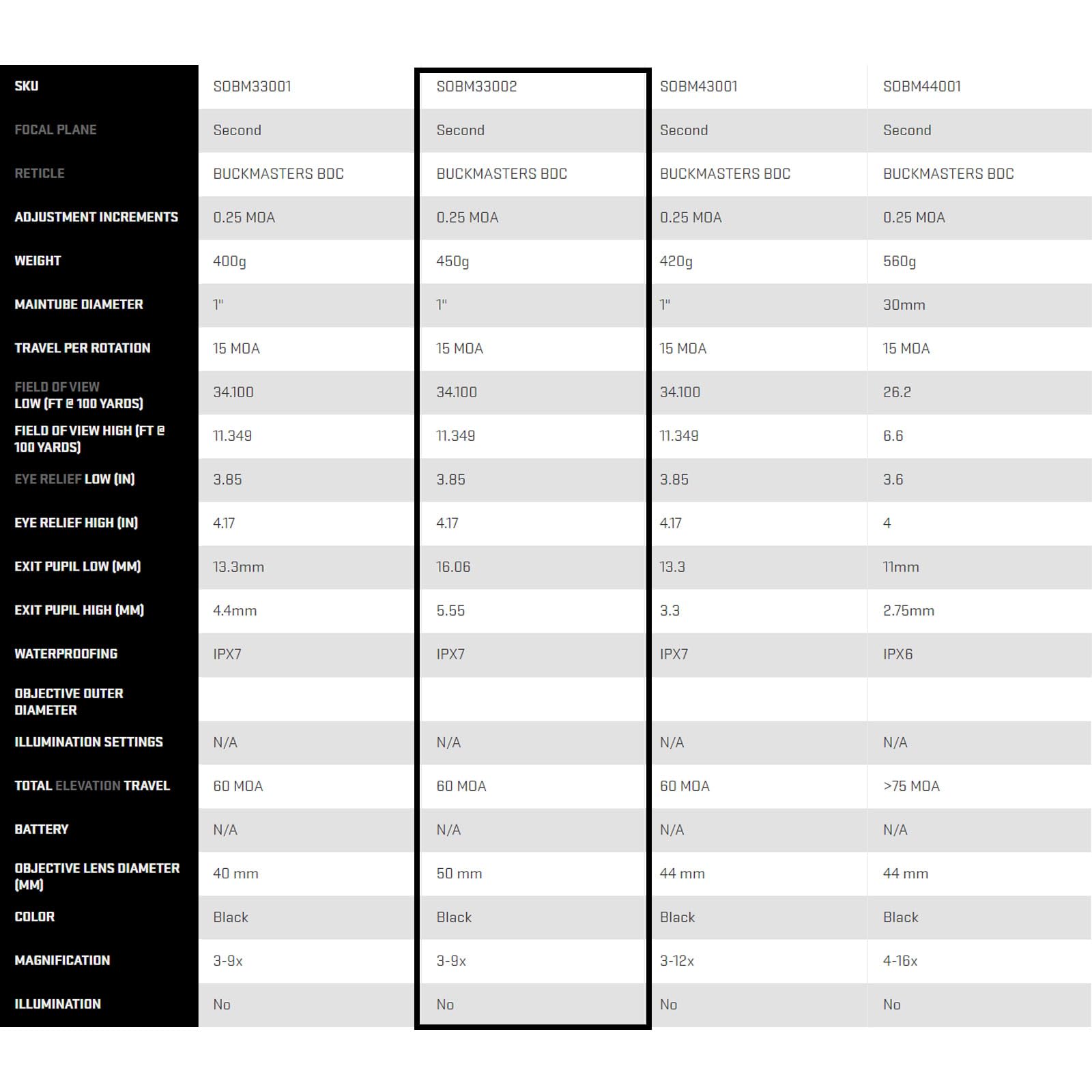 BUCKMASTERS BDC RETICLE - This rifle scope comes equipped with a unique Buckmasters Bullet Drop Compensation (BDC) reticle, complete with holdover dots that extend up to a distance of 500 yards; Avid hunters know the upgraded game hunting comes with upgraded equipment