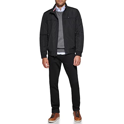 STYLISH FEATURES: Hilfiger printed contrast branded logo on back neck, signature Tommy flag at left chest and rubber logo patch on left arm; Piping across chest and back for added detail; Quilted interior lining