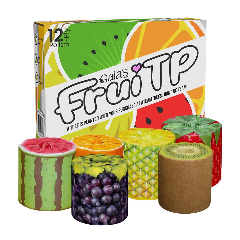 ✔️Elevate your daily bathroom experience with Gaia's FruiTP, a splendid wrapper designed to adorn your eco-conscious lifestyle. It's not just toilet paper; it's a statement of your commitment to a better world. "Unroll the Fun and Go in Style!"