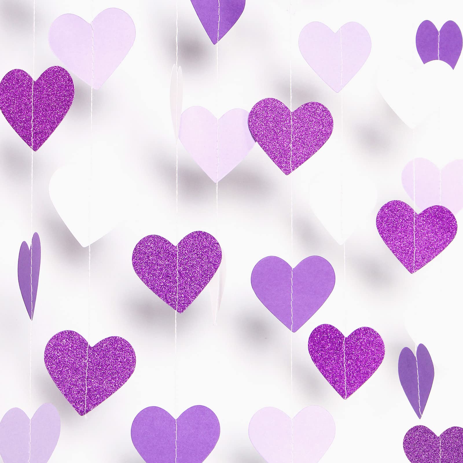 Purple Party Decoration Heart-Garland - 52Ft Purple Lavender White Streamers Birthday Banner Baby Bridal Shower Wedding Engagement Bachelorette Graduation Decorations Lasting Surprise